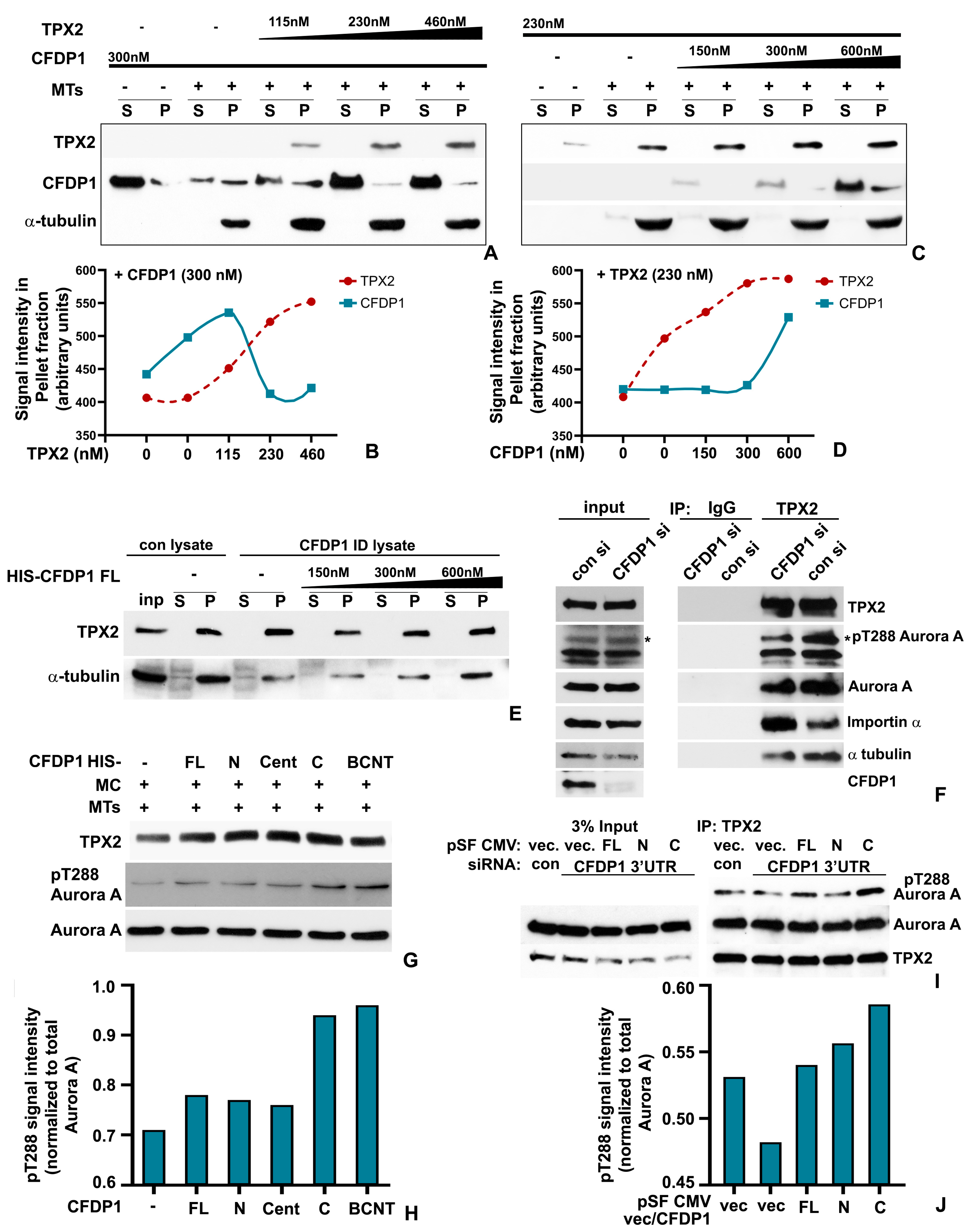 Figure 8B,C). In the next step, after activating TPX2, CFDP1 exerts its microtubule binding and bundling activities via its C terminus to facilitate MT assembly near the kinetochore in a TPX2-dependent fashion (as illustrated in