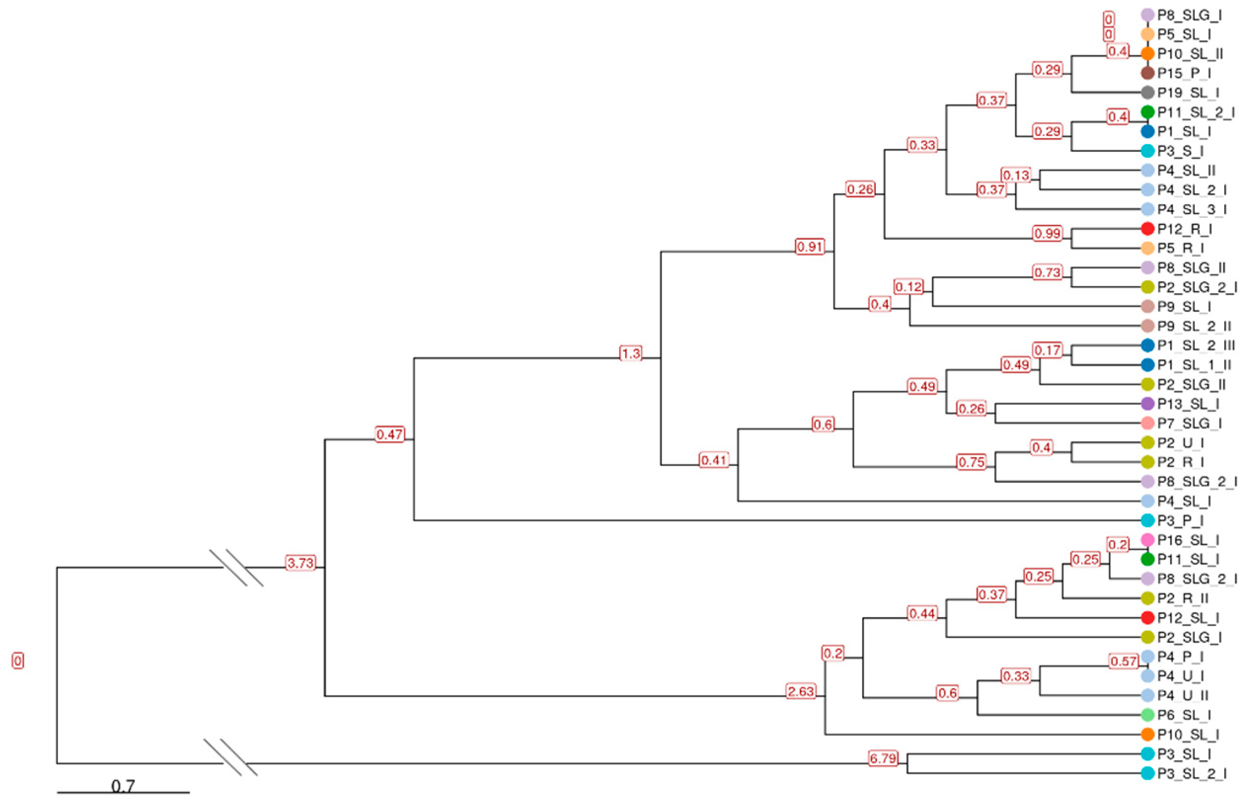 2.1.3. Phylogenetic Analysis and STR-Based Clustering