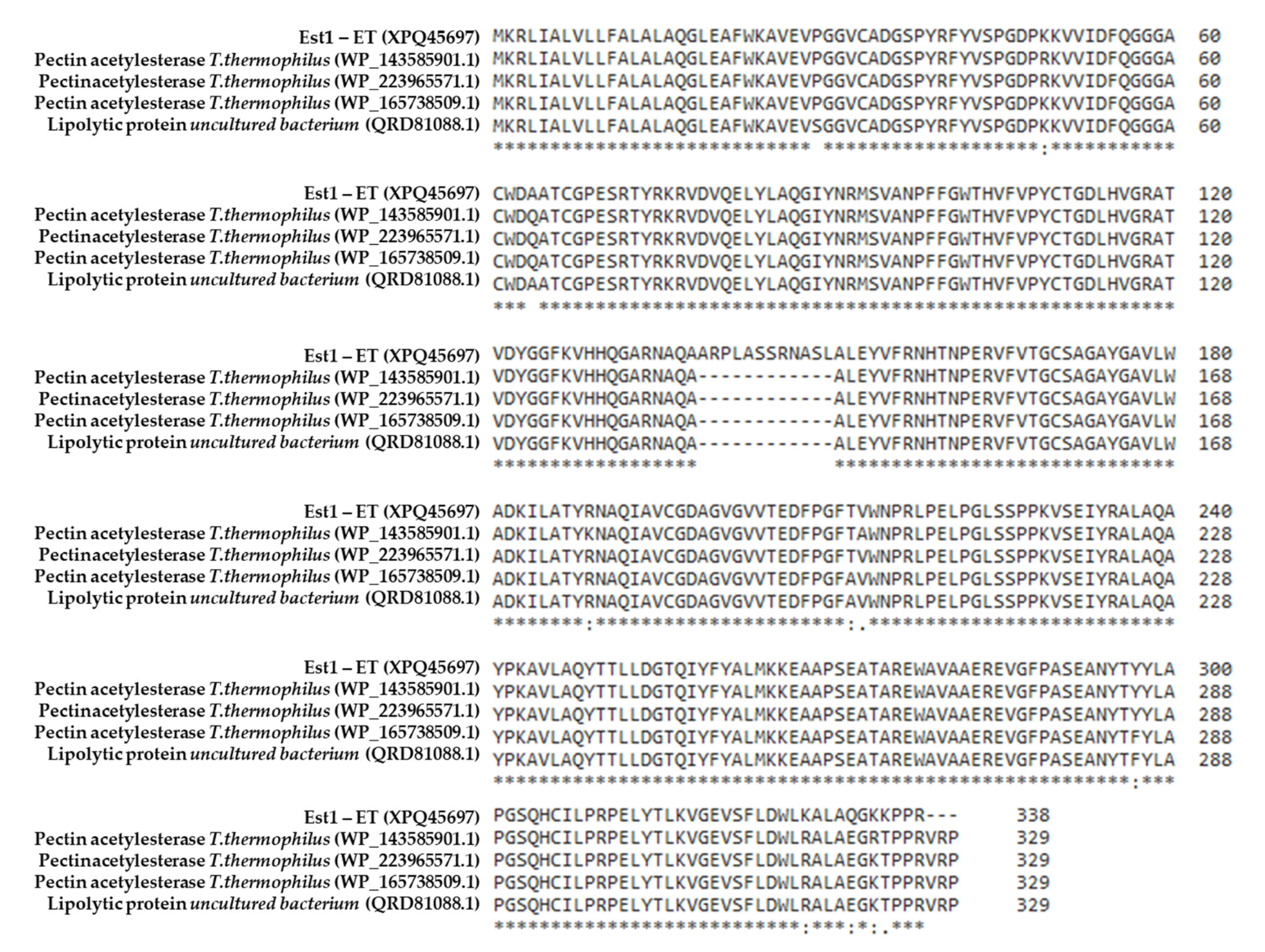 Est1-ET shares a 94.9% identity with the amino acid sequences of a pectin acetylesterase from