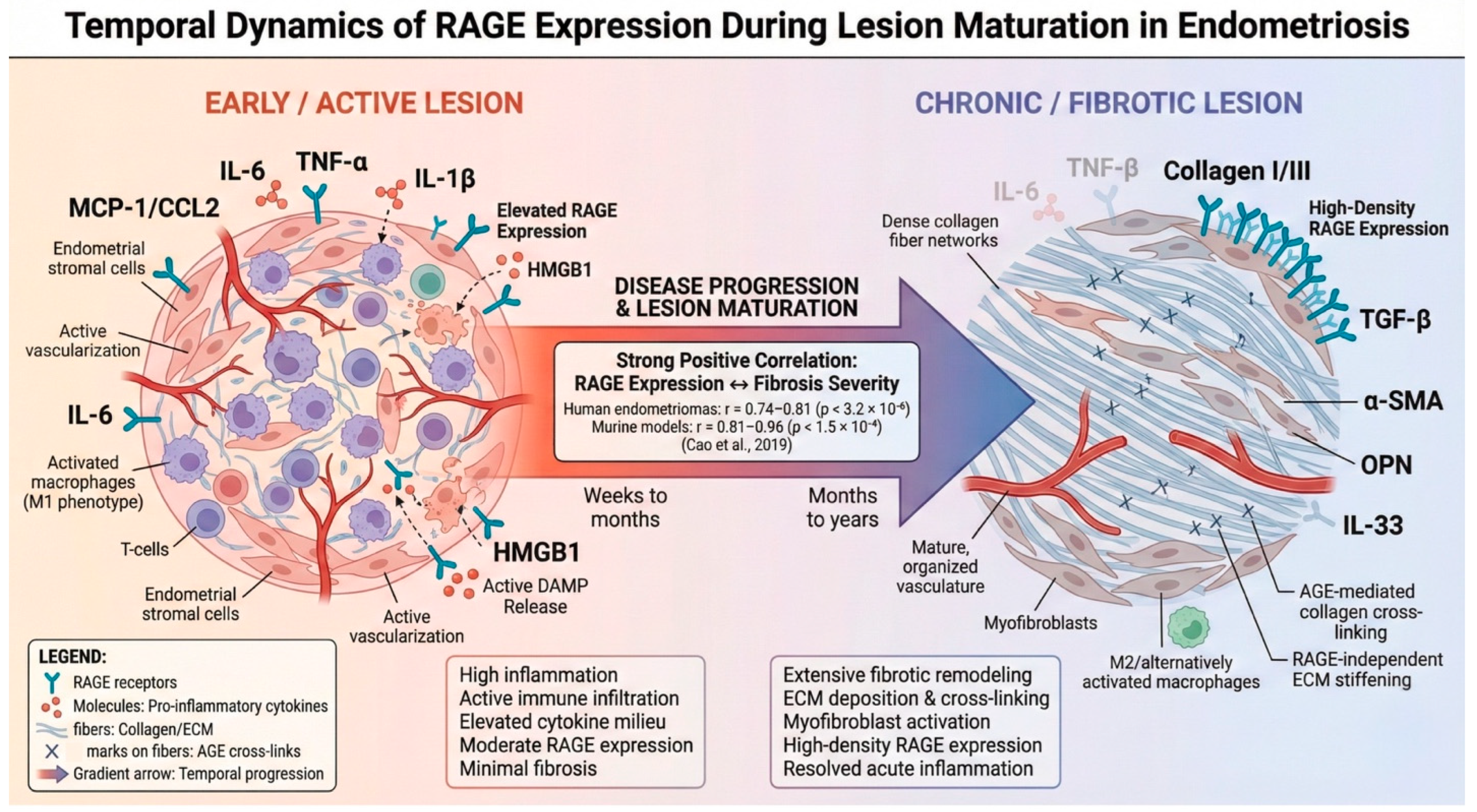 3.2.4. RAGE–Fibrosis Association and Lesion Maturation
