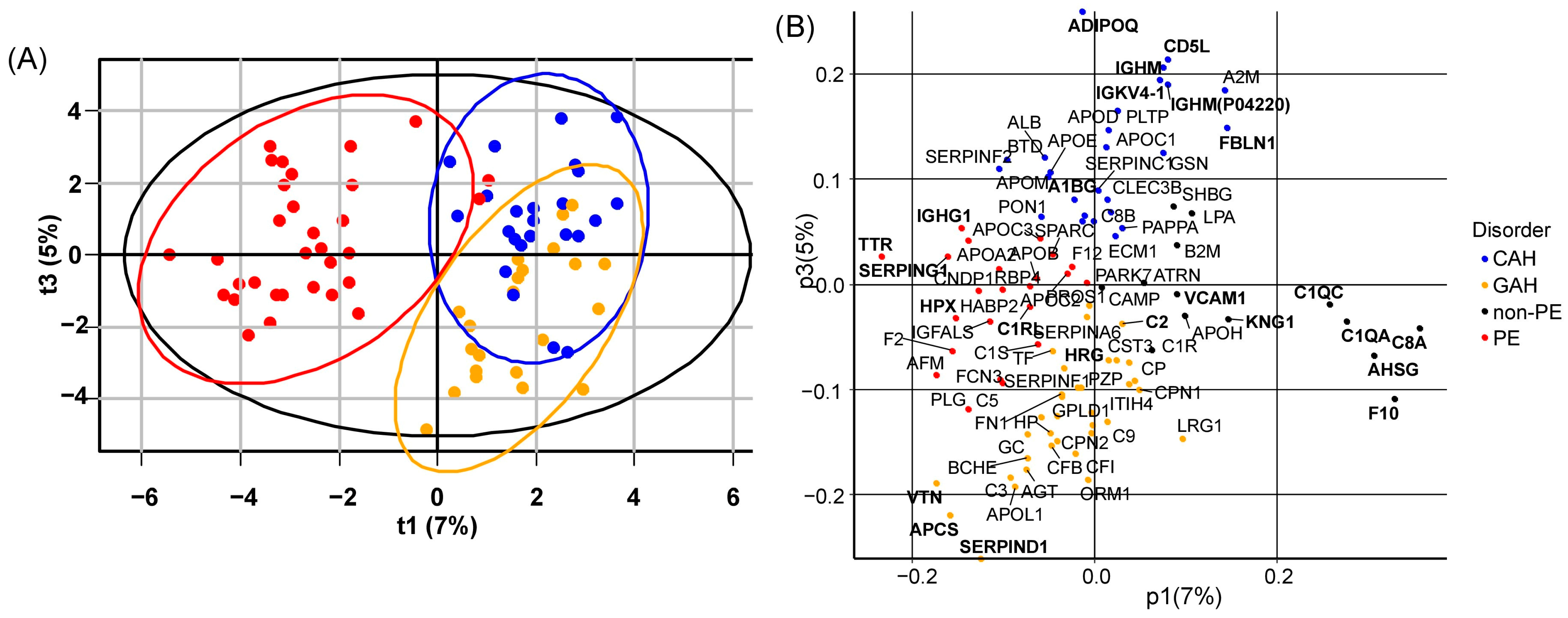 | CAH vs. GAH | HRG, APCS, APOA4, SERPINA6, APOC2 A1BG | OPLS-DA | 0.91 | 0.92 | 0.91 | 0.91 | 0.92 | 0.91 |