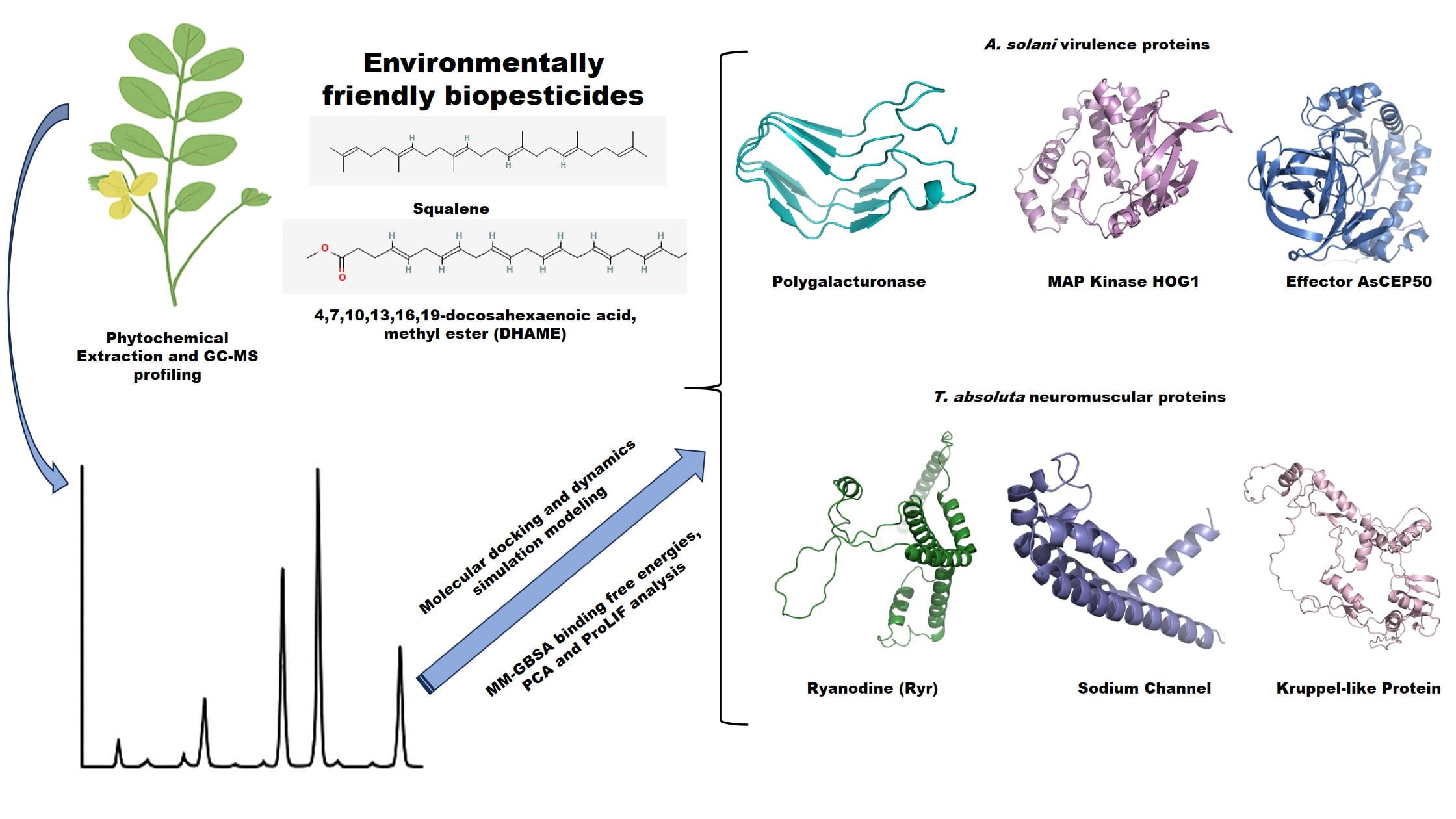 Molecular Dynamics Insights into Cassia tora-Derived Phytochemicals as Dual Insecticidal and Antifungal Agents Against Tomato Tuta absoluta and Alternaria solani