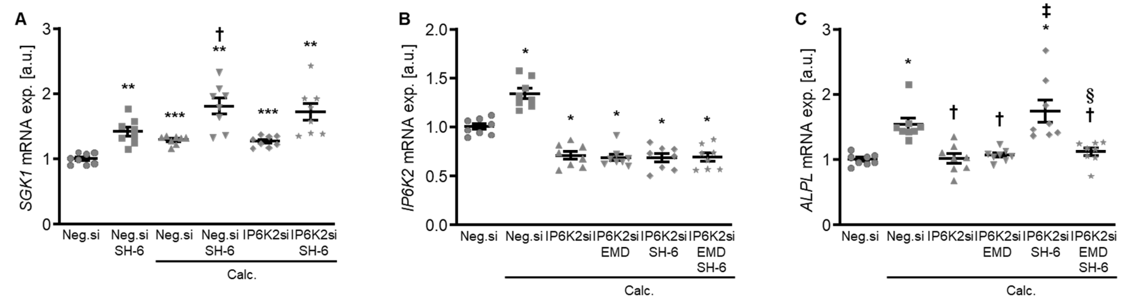 - Poetsch, F.; Henze, L.A.; Estepa, M.; Moser, B.; Pieske, B.; Lang, F.; Eckardt, K.U.; Alesutan, I.; Voelkl, J. Role of SGK1 in the Osteogenic Transdifferentiation and Calcification of Vascular Smooth Muscle Cells Promoted by Hyperglycemic Conditions. Int. J. Mol. Sci. 2020, 21, 7207. [Google Scholar] [CrossRef]