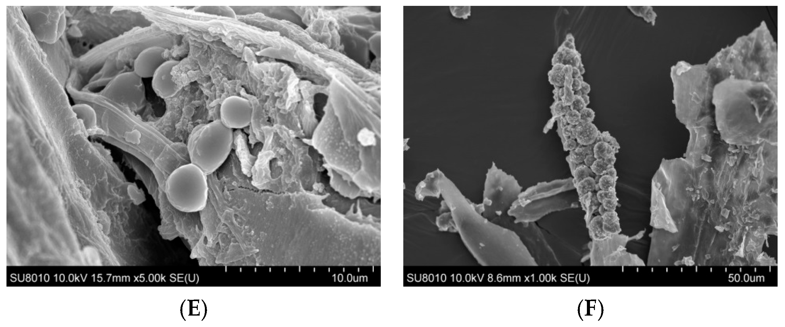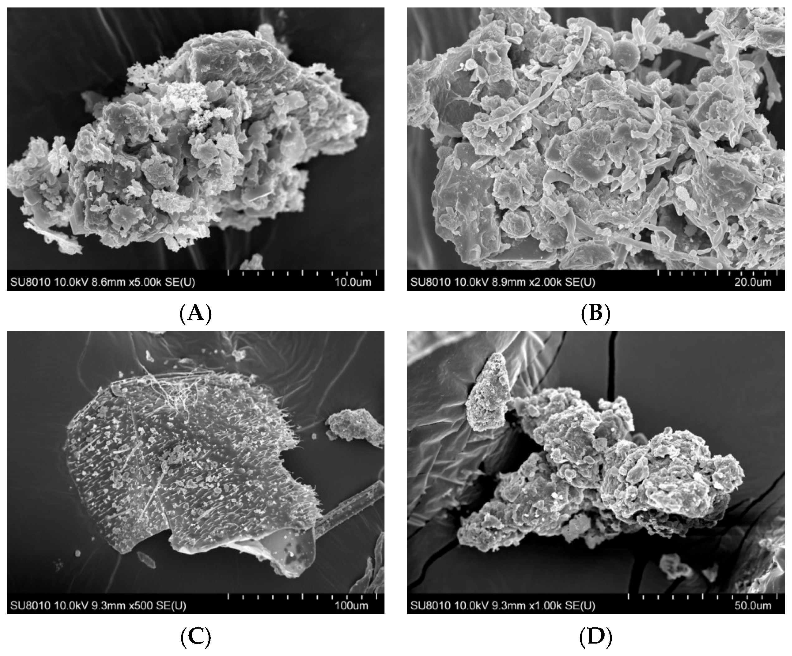 2.1. Organic Dust Surface Morphology