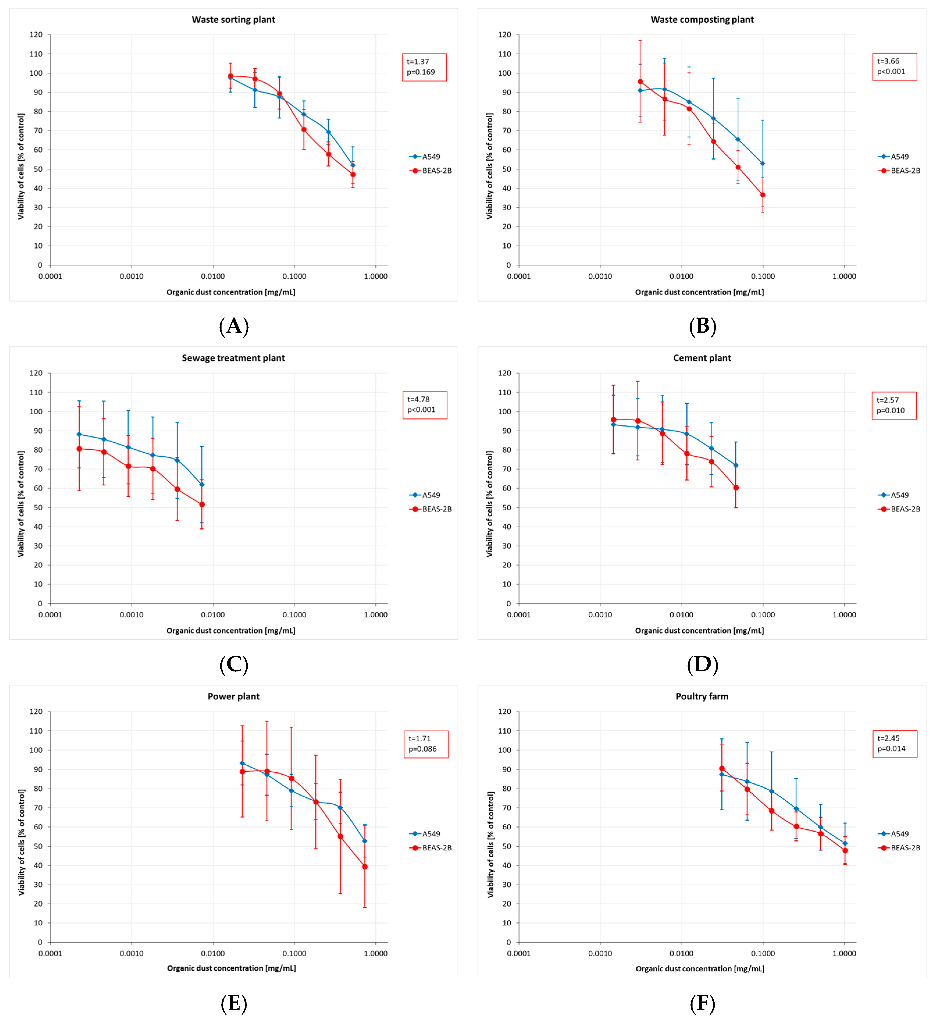 - Allermann, L.; Poulsen, O.M. Inflammatory Potential of Dust from Waste Handling Facilities Measured as IL-8 Secretion from Lung Epithelial Cells in Vitro. Ann. Occup. Hyg. 2000, 44, 259–269. [Google Scholar] [CrossRef]