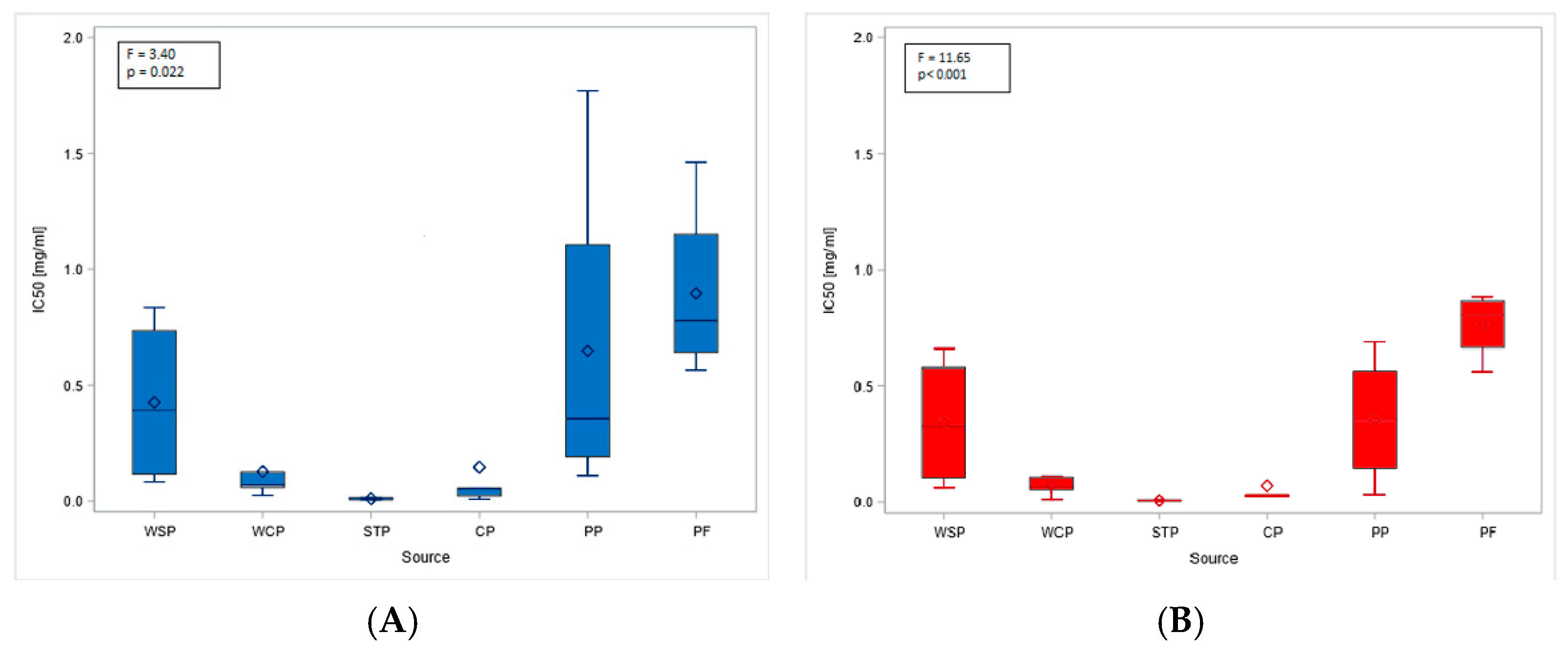 | Agent | WSP | WCP | STP | CP | PP | PF | ANOVA (F; p) |