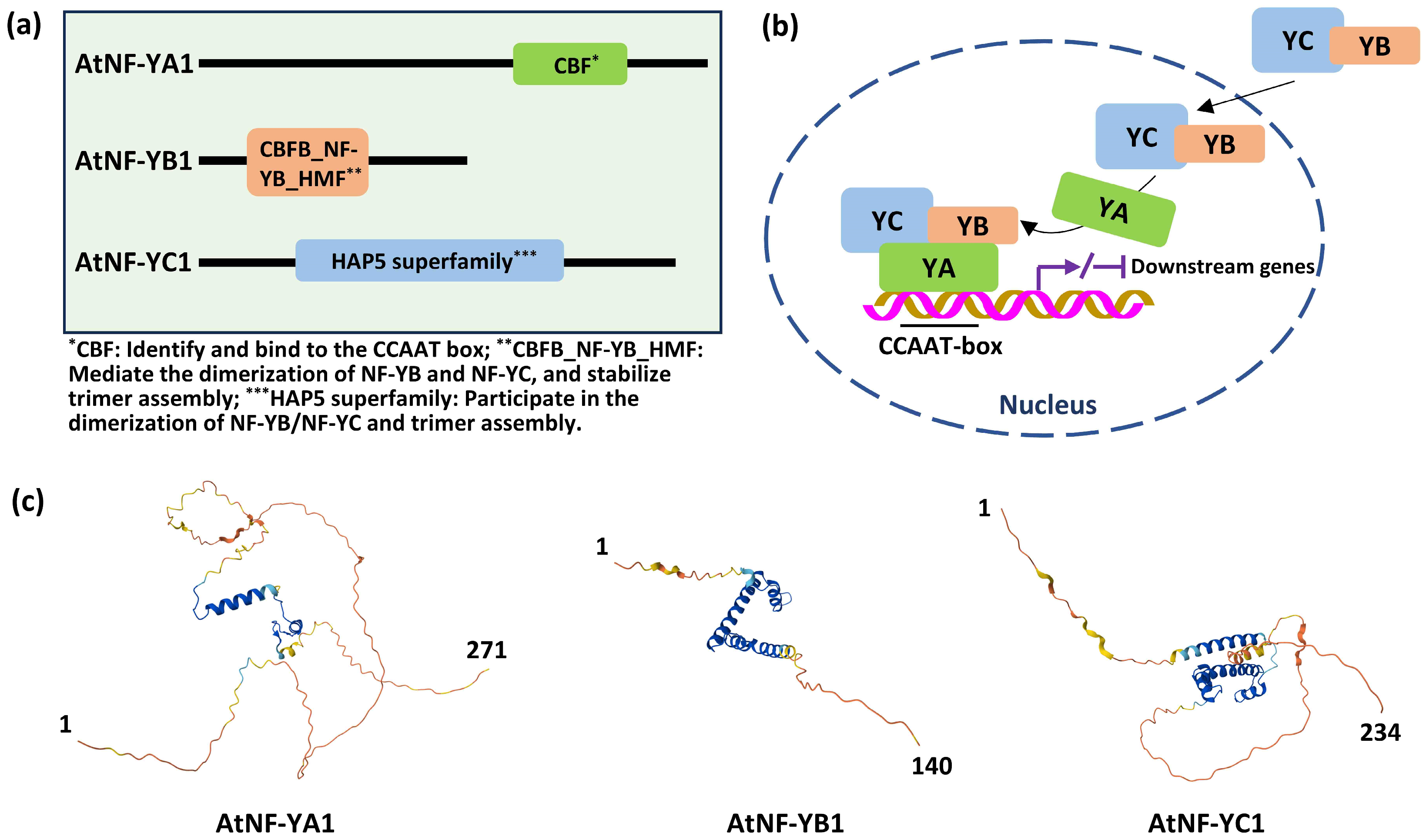 - Wu, H.; Hou, X.; Zhang, C. Nuclear factor-Y transcription factors in crops: Biological roles, regulation, and breeding applications. Plant Commun. 2025, 6, 101530. [Google Scholar] [CrossRef]