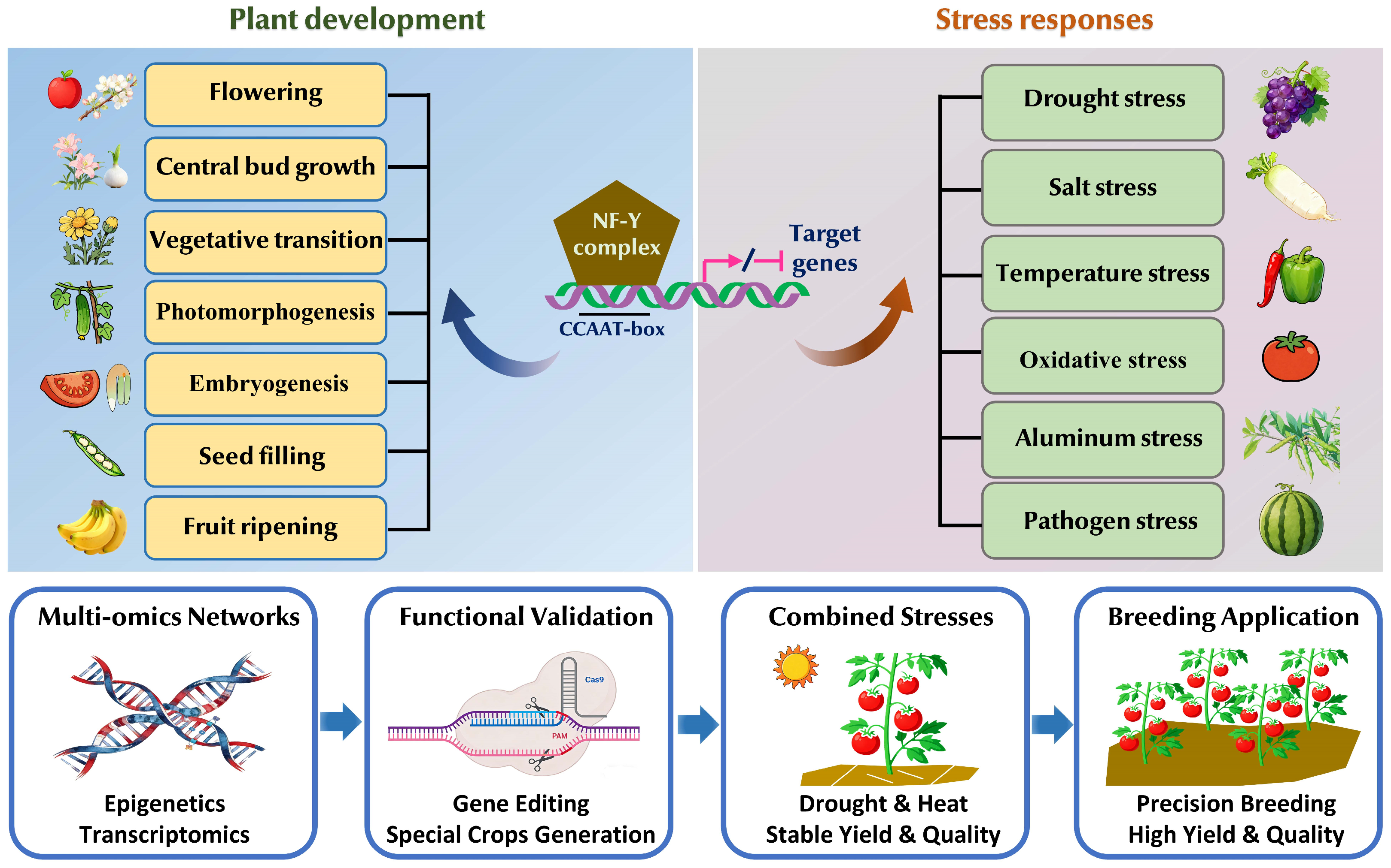 Zhang, M.; Chen, D.; Dong, C. Molecular Mechanisms of NF-Y Transcription Factors in Horticultural Plant Development and Stress Responses: Recent Advances. Int. J. Mol. Sci. 2026, 27, 1443. https://doi.org/10.3390/ijms27031443