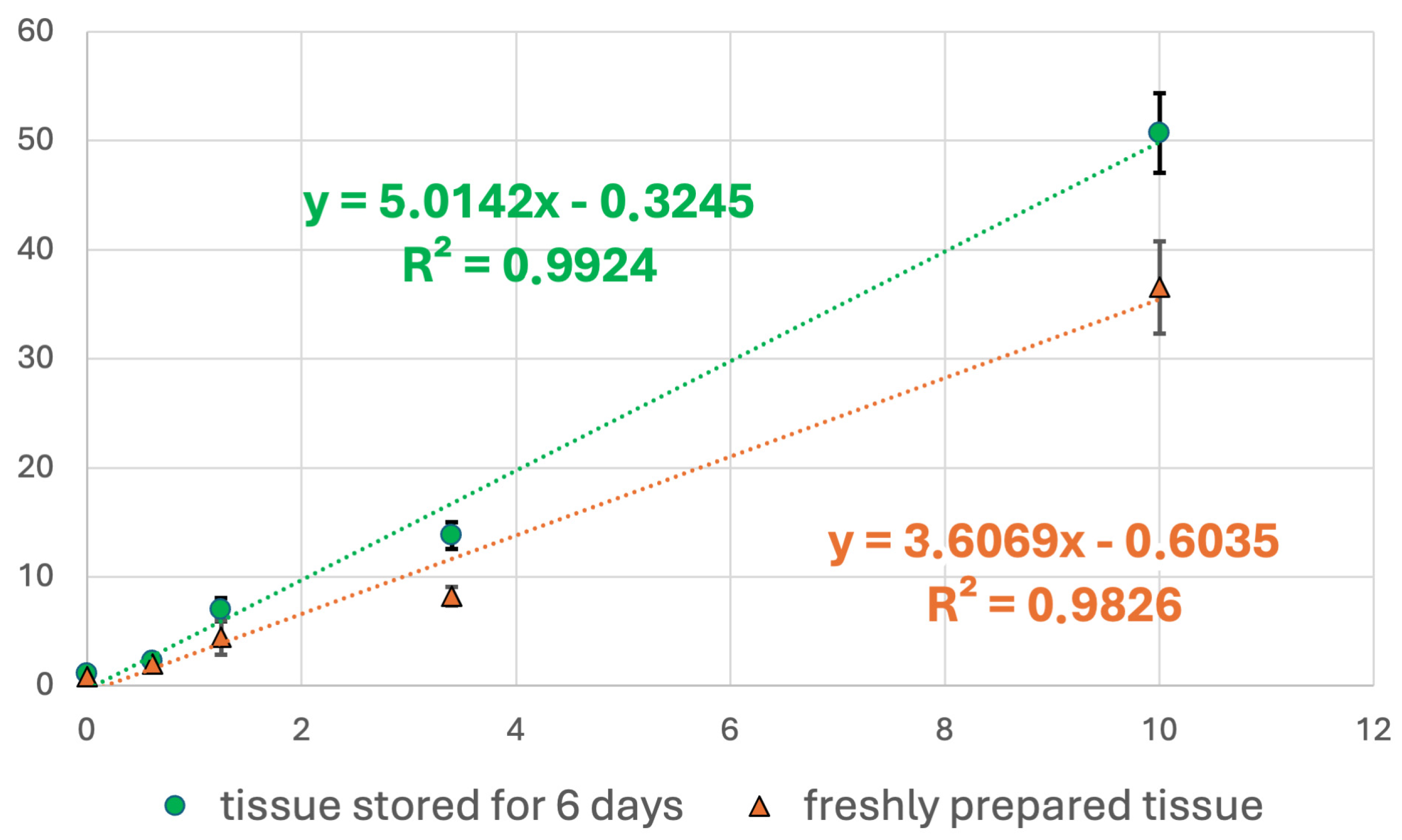 Initially, both tissues were thoroughly cut with the scalpel in different directions and homogenised in the glass homogeniser. The grinder consisted of a borosilicate glass cylinder (1 mL volume) and a conical PTFE (Polytetrafluoroethylene) pestle, with a pestle-cylinder clearance of 0.1 to 0.15 mm (Wheaton, Bionovo, Legnica, Poland), which was used for mechanical homogenization. After homogenization, all the tissue was removed from the glass cylinder with a short centrifugation ‘upside down’ in a 15 mL ‘Falcon’ tube (1600 rpm, a few seconds). A portion of the prepared tissue was transferred to a fresh probe of the Eppendorf type with the aid of a positive-displacement pipette (Pos-D) Ranin (Mettler Toledo), Warsaw, Poland and weighed. For the liver homogenate, the weight roughly corresponded to the homogenate volume, and for the final experiment, 67.27 mg of tissue was taken. For the brain, the ratio was more or less like 1:2, and for the final experiment, 81.82 mg of tissue was used. Glucose solution was added to the homogenate and mixed with a conical form PTFE pestle, and that was the point of maximum concentration in the calibration curve.
