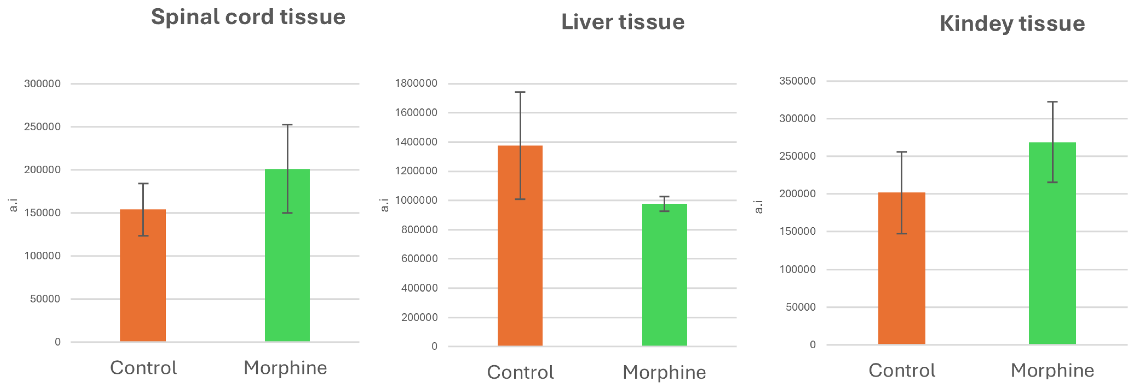 11]. Since we had access to this type of tissue, we decided to check the hexose levels there as well. For the experiment, liver, one kidney, and spinal cord were taken from three different morphine-addicted and control animals.