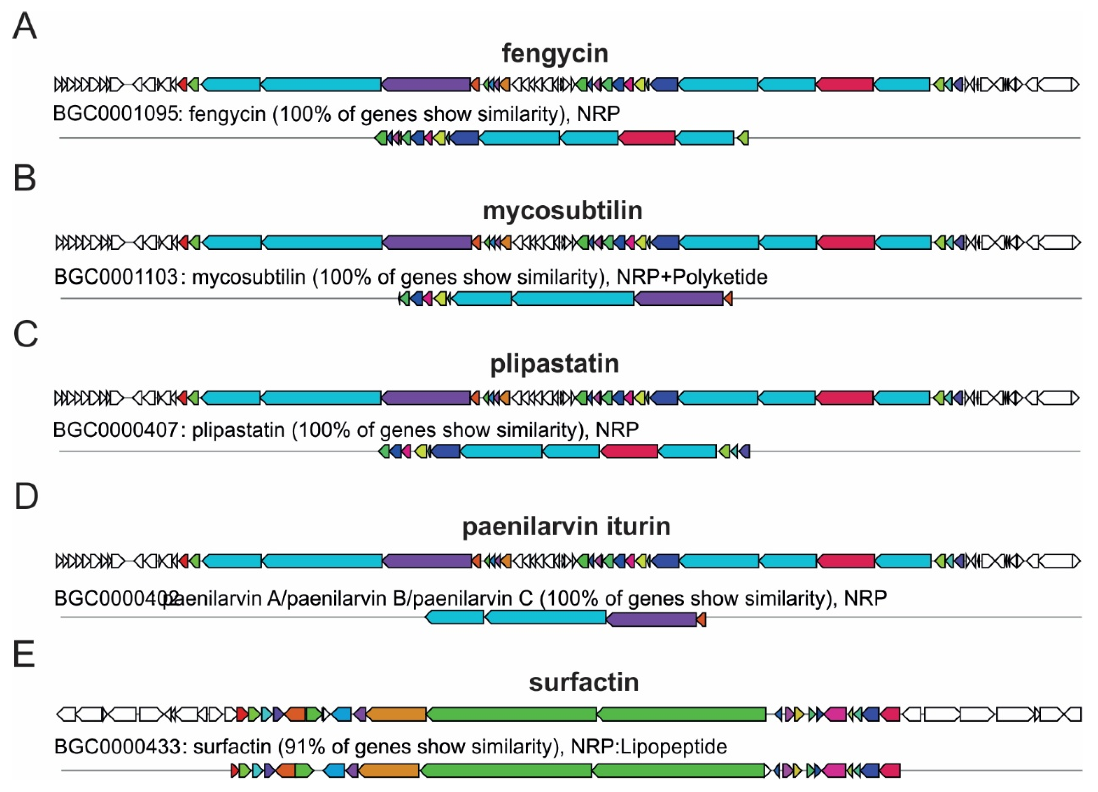 - Blin, K.; Shaw, S.; Augustijn, H.E.; Reitz, Z.L.; Biermann, F.; Alanjary, M.; Fetter, A.; Terlouw, B.R.; Metcalf, W.W.; Helfrich, E.J.N.; et al. AntiSMASH 7.0: New and Improved Predictions for Detection, Regulation, Chemical Structures and Visualisation. Nucleic Acids Res. 2023, 51, W46–W50. [Google Scholar] [CrossRef]
