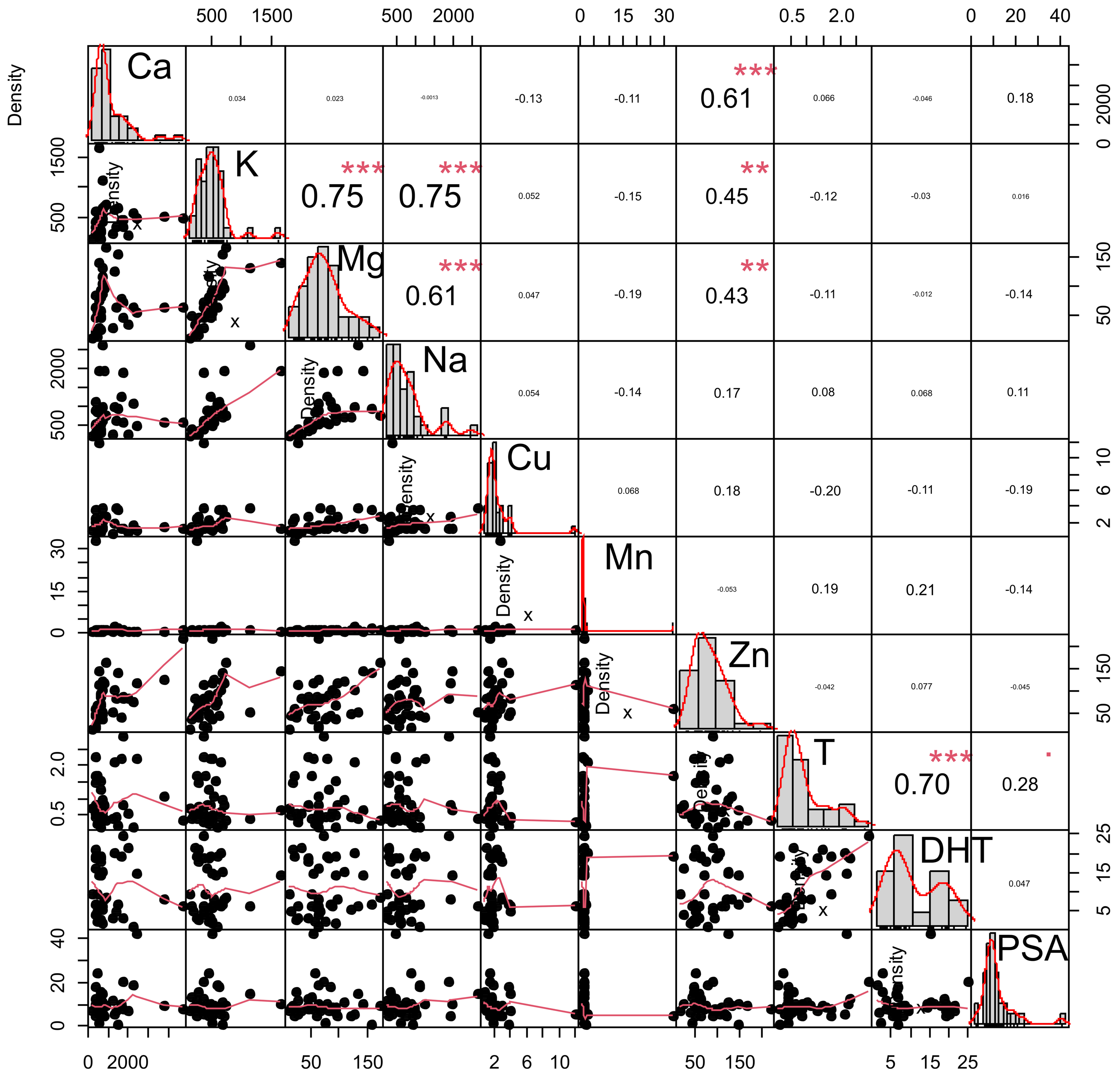 Magnesium further correlated with Na (r = 0.481, p < 0.001) and presented a notable positive correlation with Mn (r = 0.343, p = 0.002).