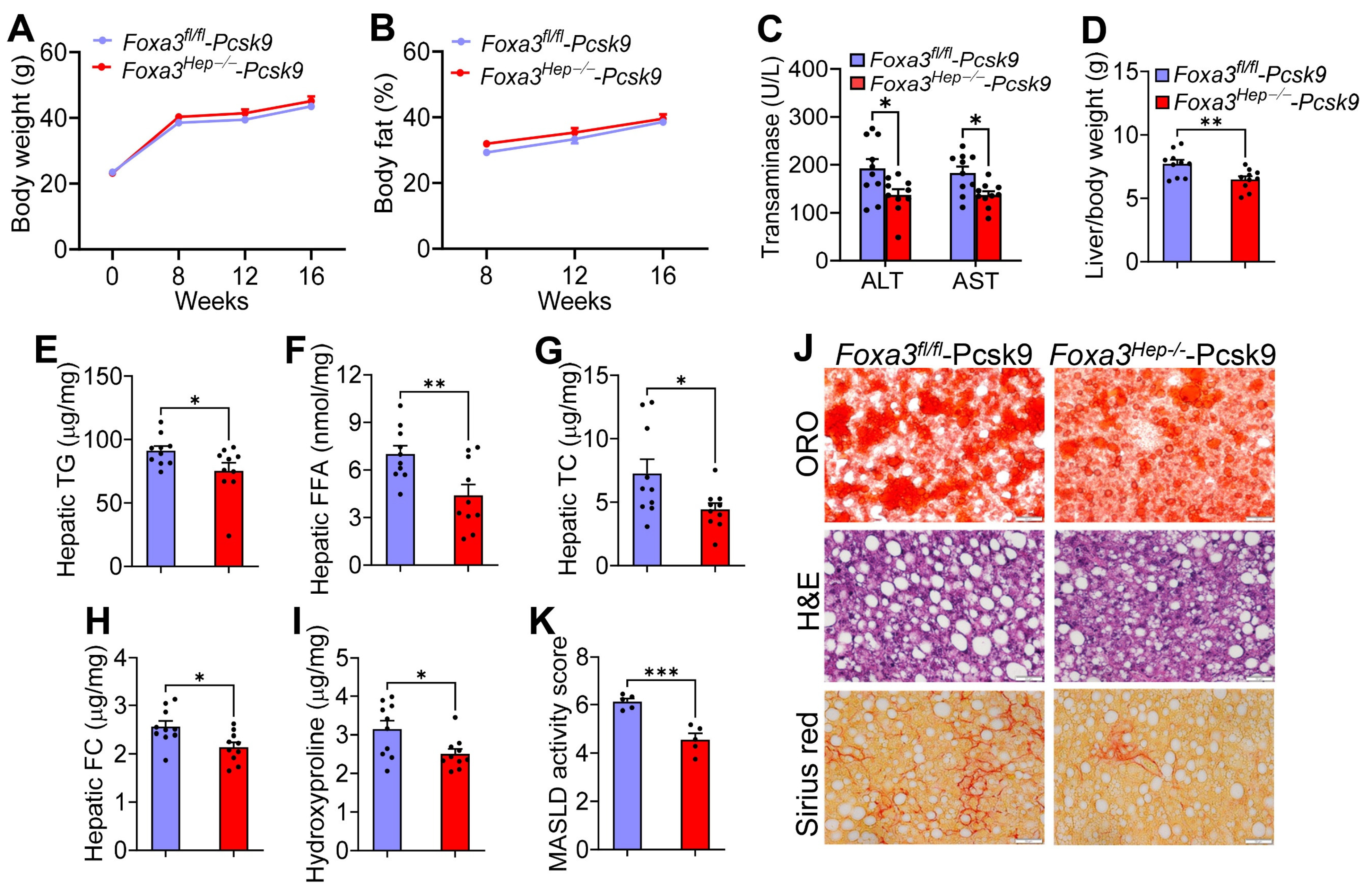 2.1. Genetic Loss of Hepatocyte Foxa3 Does Not Affect Hfcf Diet or Western Diet-Induced Masld