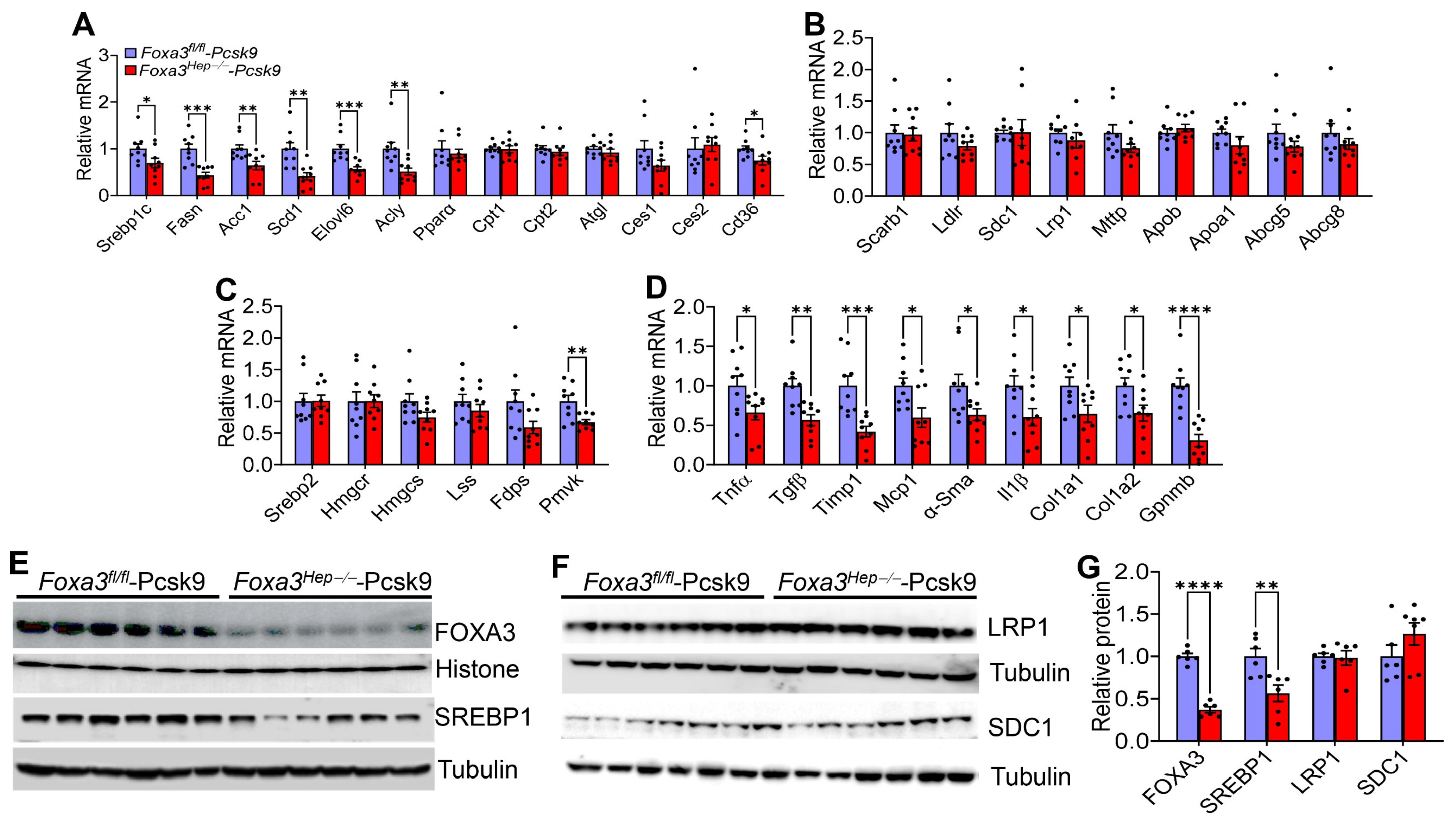 2.5. Loss of Hepatocyte Foxa3 Inhibits Lipogenic, Pro-Inflammatory, and Fibrogenic Genes in Hyperlipidemic Ldlr-Deficient Mice