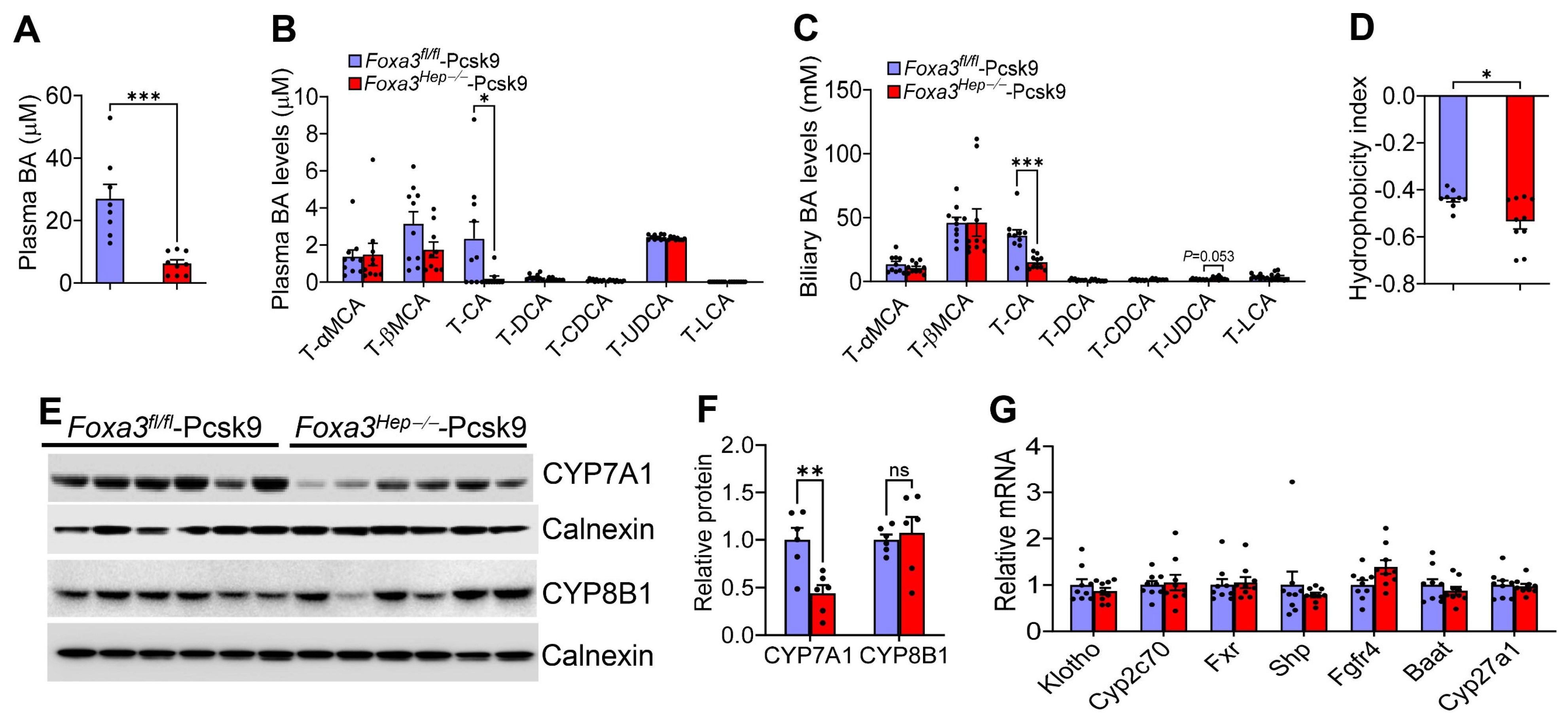 2.6. Loss of Hepatocyte Foxa3 Lowers Cholic Acid Levels and Reduces Bile Acid Hydrophobicity in Hyperlipidemic Ldlr-Deficient Mice