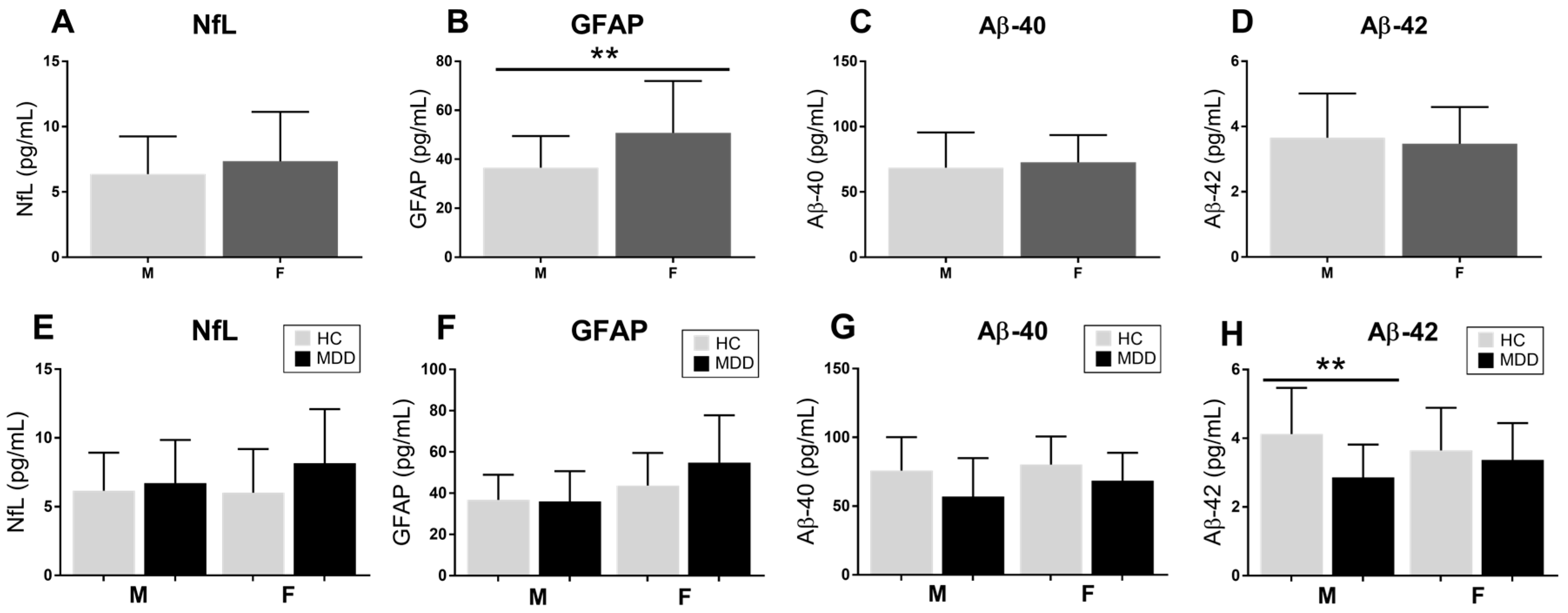 Reduced Plasma Aβ Peptides but Stable NfL and GFAP in Major Depressive Disorder