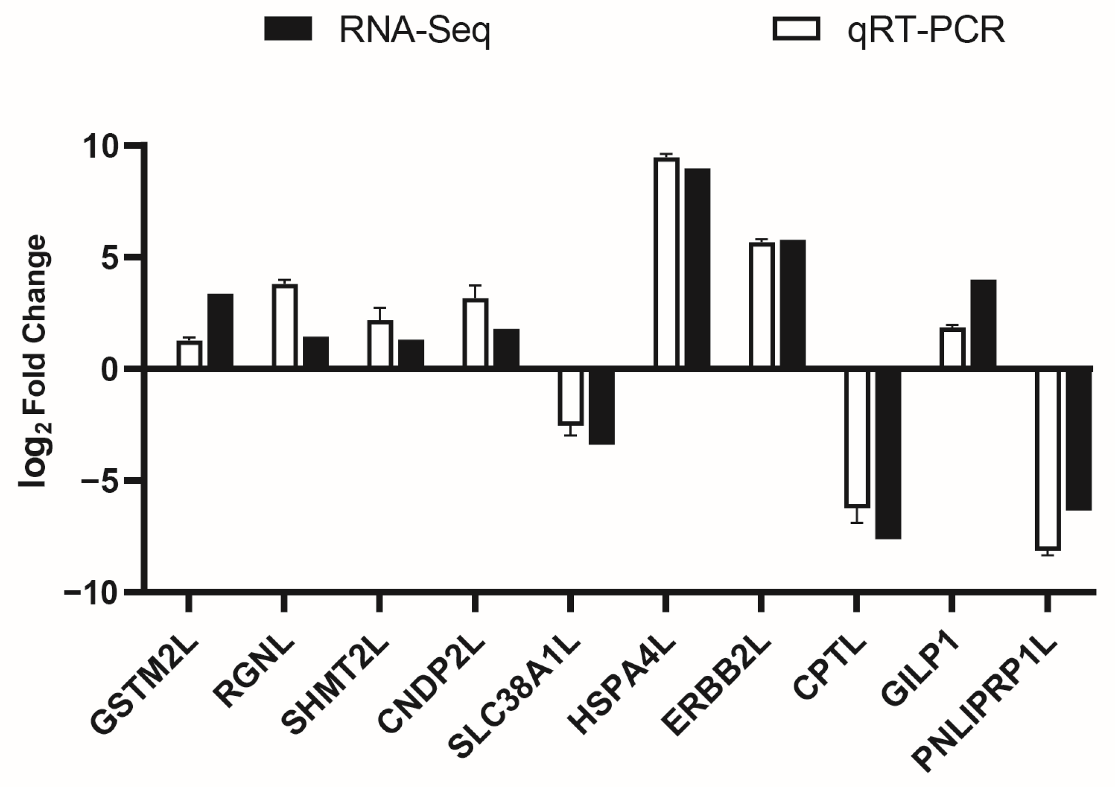 2.8. Quantitative Real-Time PCR Validation of DEGs