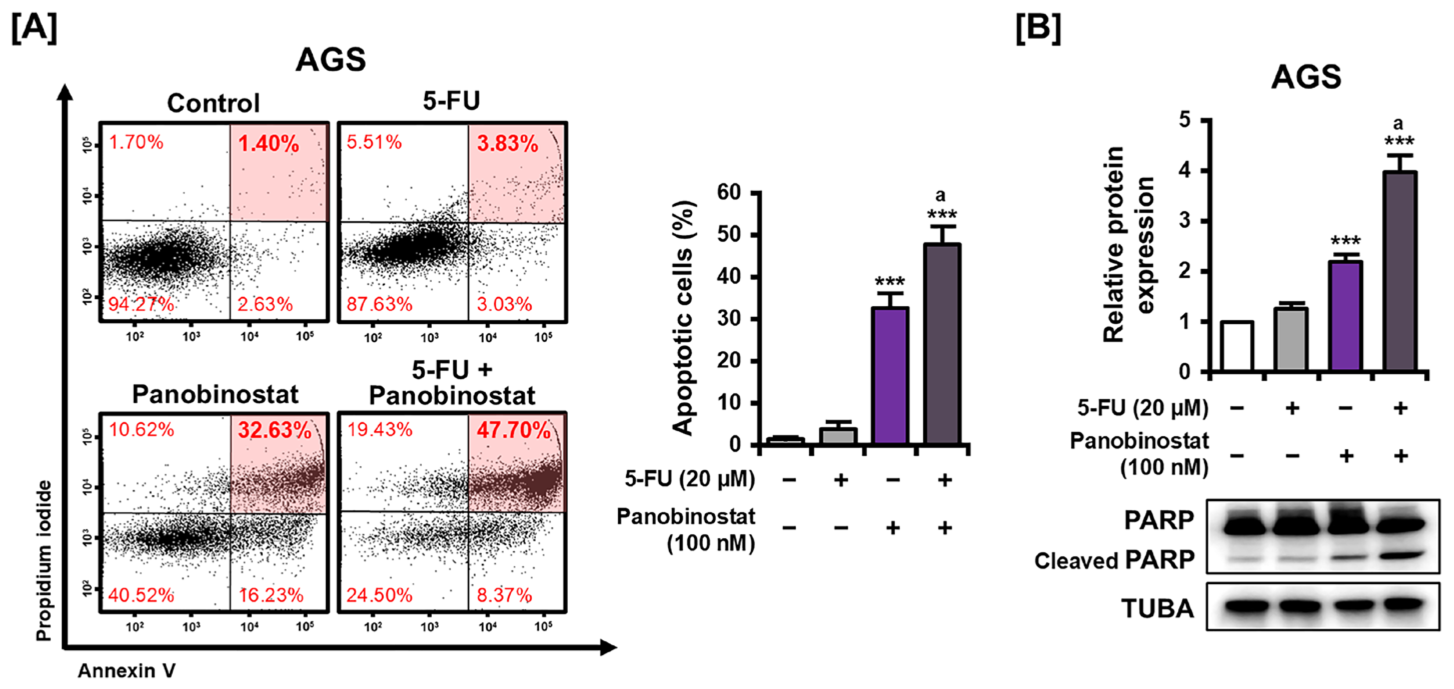 2.5. Panobinostat Enhances 5-FU-Induced Apoptosis in AGS Cells