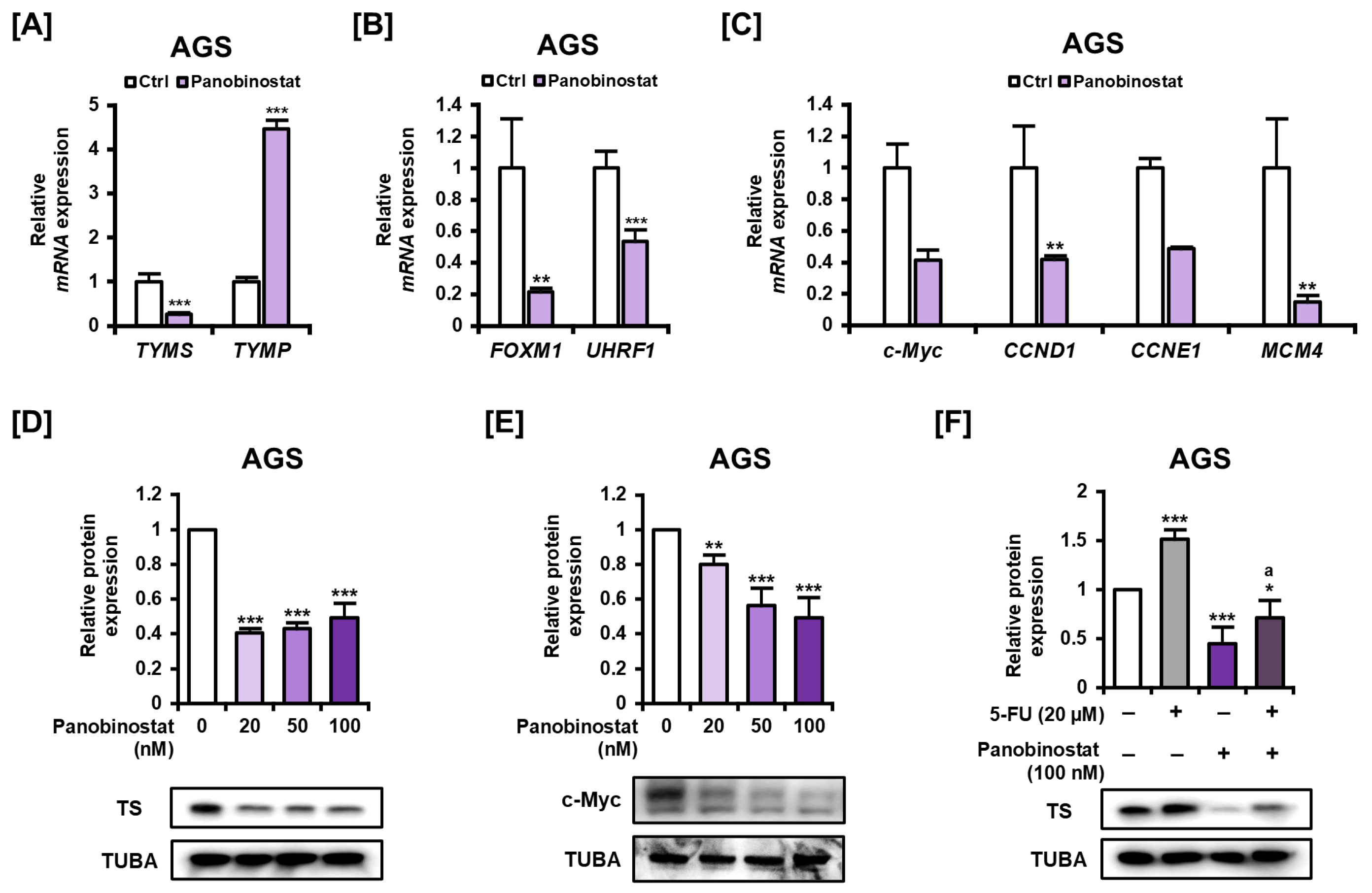 Chicago/Turabian StylePark, Sooyeon, Nayeon Kim, and Changwon Yang. 2026. "Panobinostat Potentiates the Antitumor Efficacy of 5-Fluorouracil in Gastric Cancer by Suppressing Thymidylate Synthase Expression" International Journal of Molecular Sciences 27, no. 3: 1516. https://doi.org/10.3390/ijms27031516