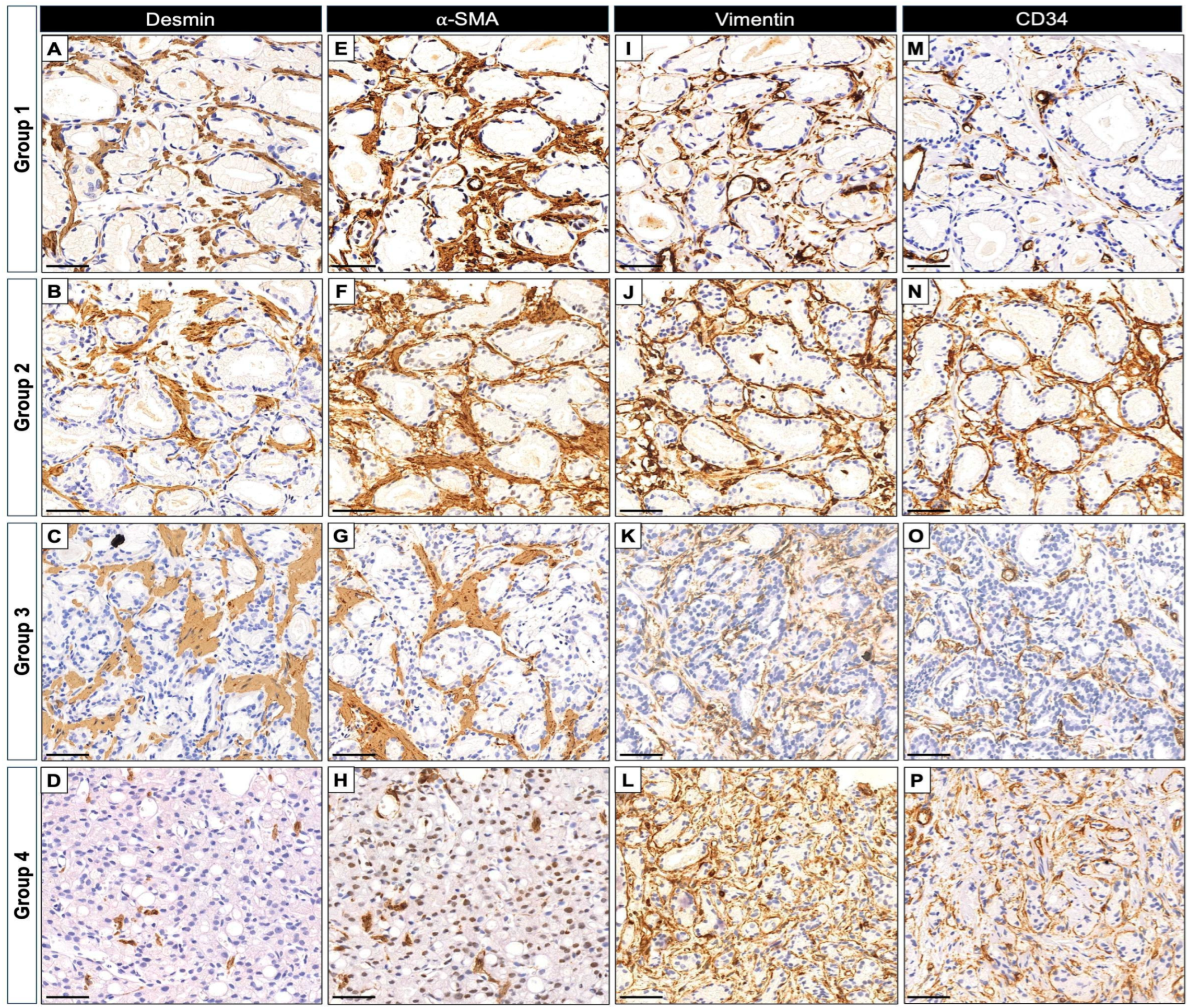 4.3. Image-Assisted Analysis of α-SMA, Desmin, Vimentin and CD34 Staining