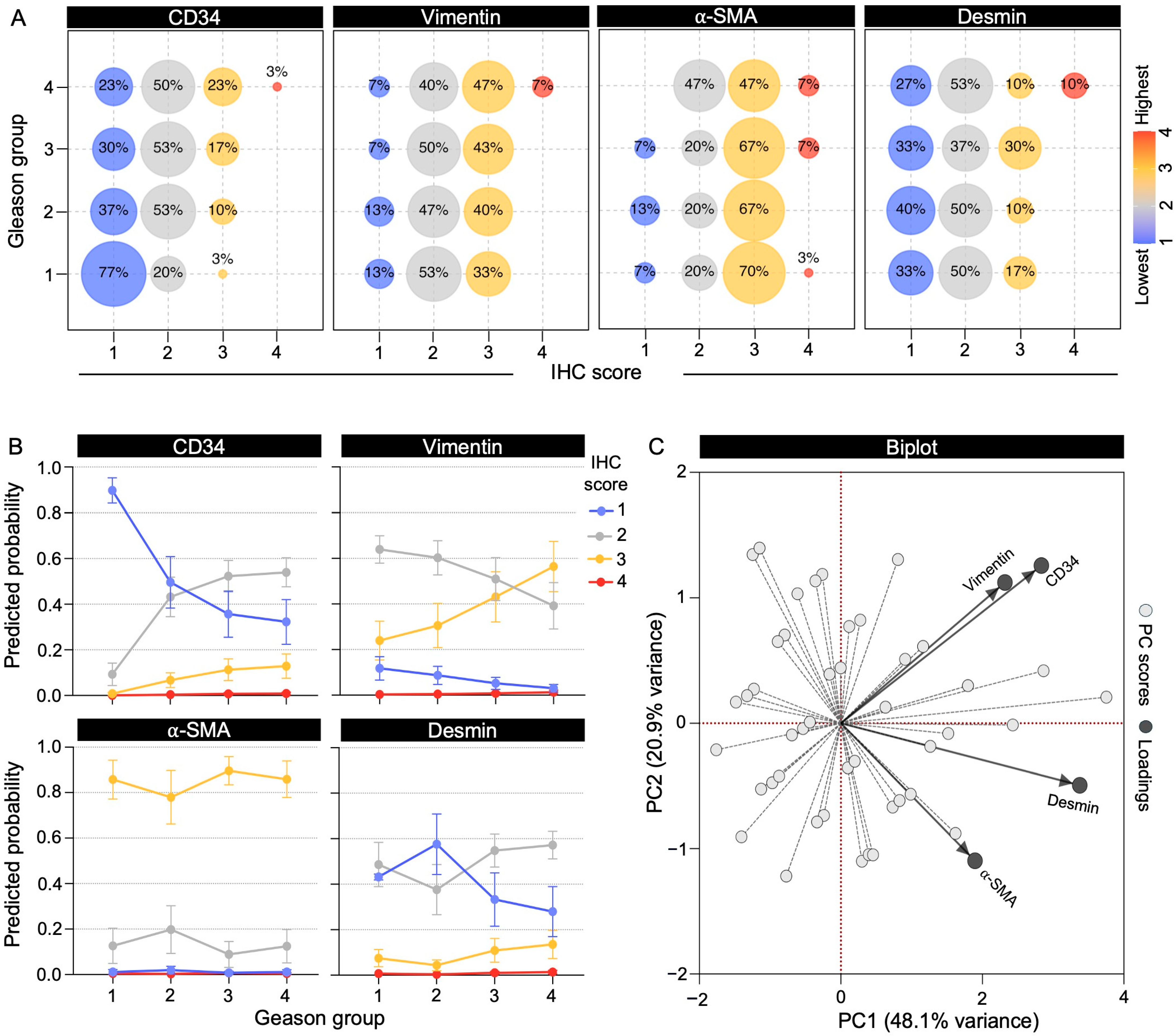 2.3. Quantitative Association of Stromal Marker Expression with Gleason Grade in PCa