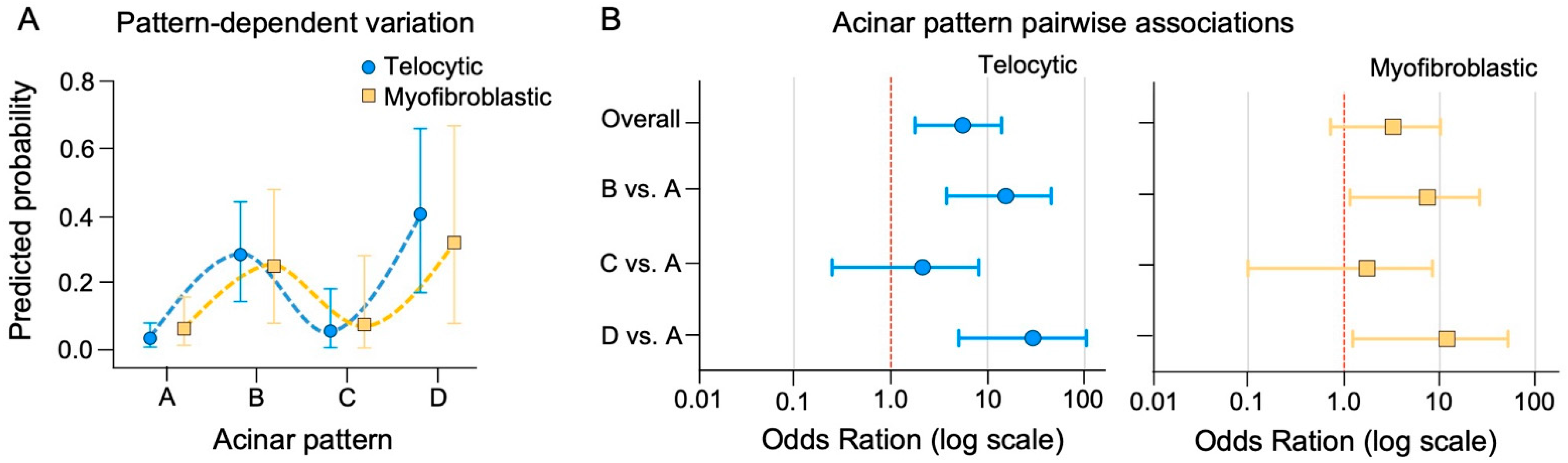 2.5. Differential Incidence of Telocytic and Myofibroblastic Stromal Phenotypes According to Acinar Architecture in Prostate Cancer