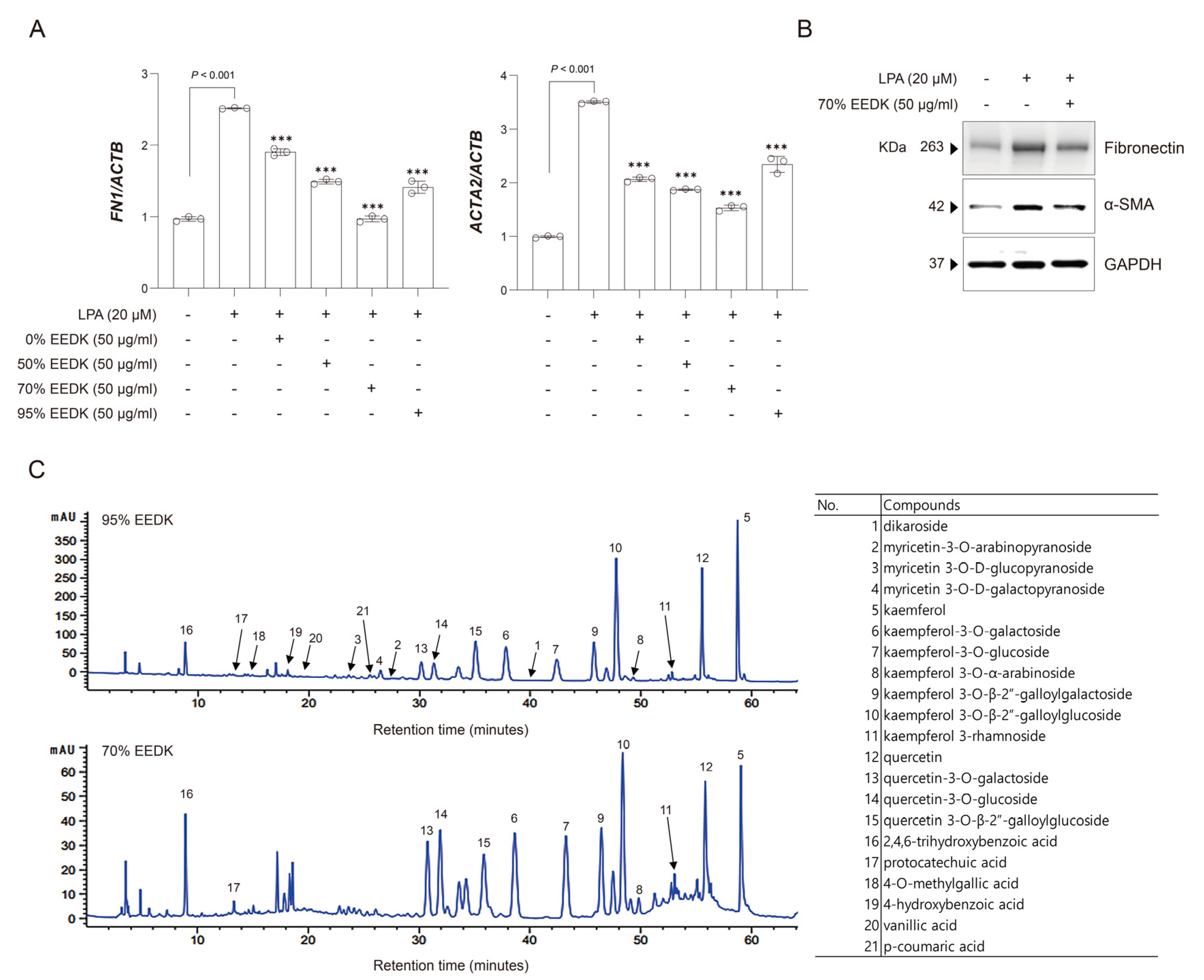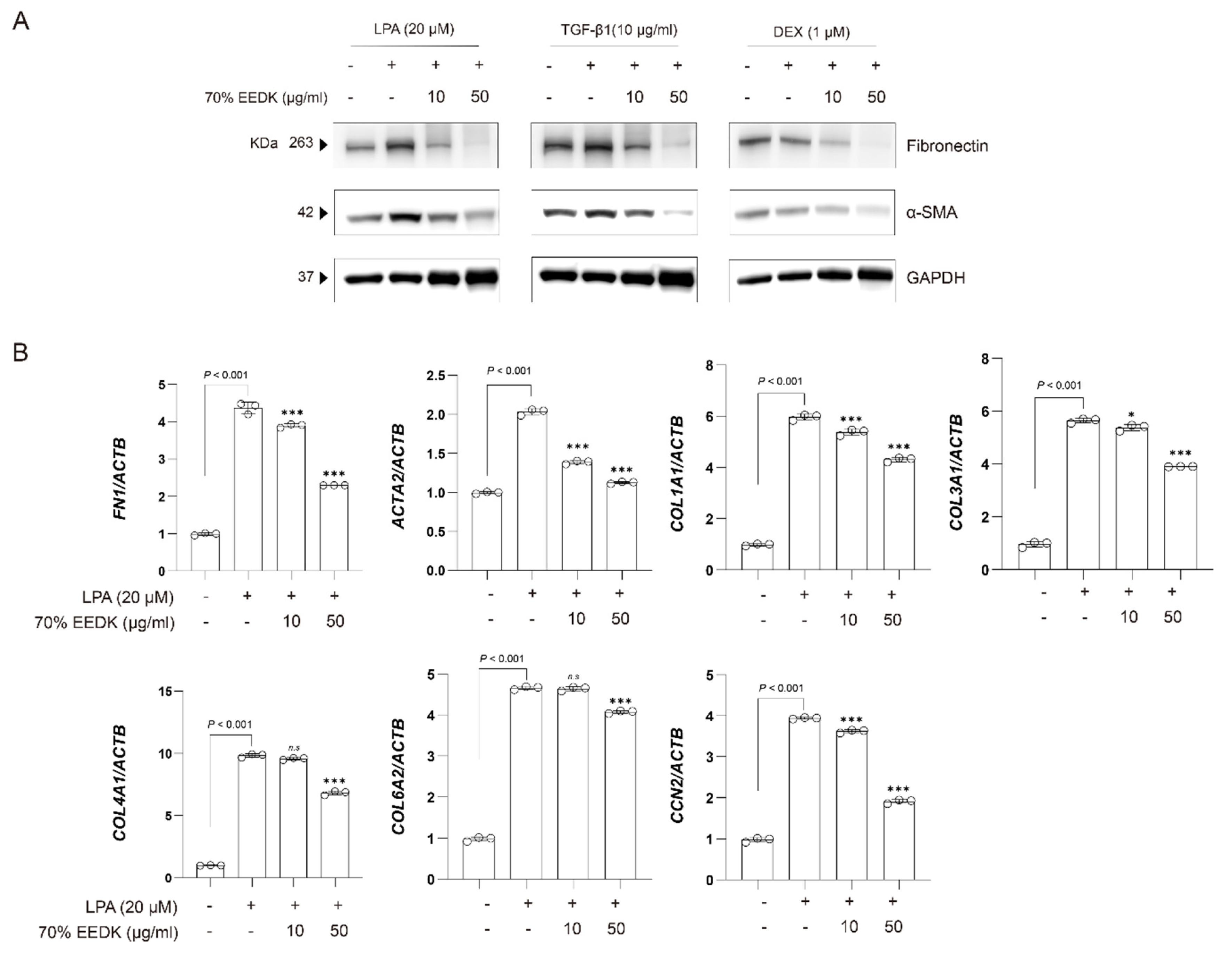 2.2. 70%. EEDK Attenuates LPA-Induced FN1 and ACTA2 Expression in HTM Cells