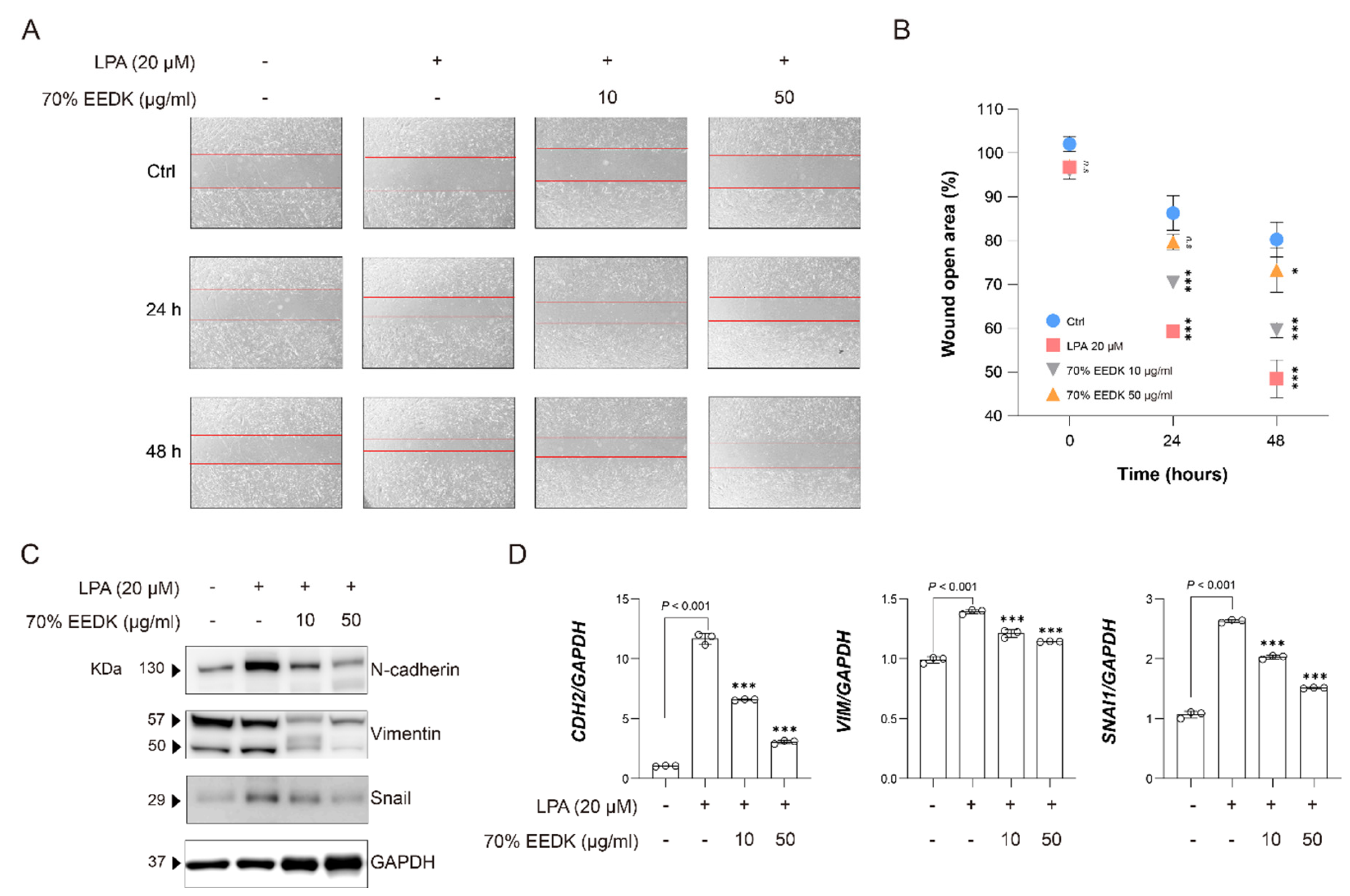 2.4. 70%. EEDK Inhibits LPA-Induced Cell Migration and EMT-Related Marker Expression in HTM Cells