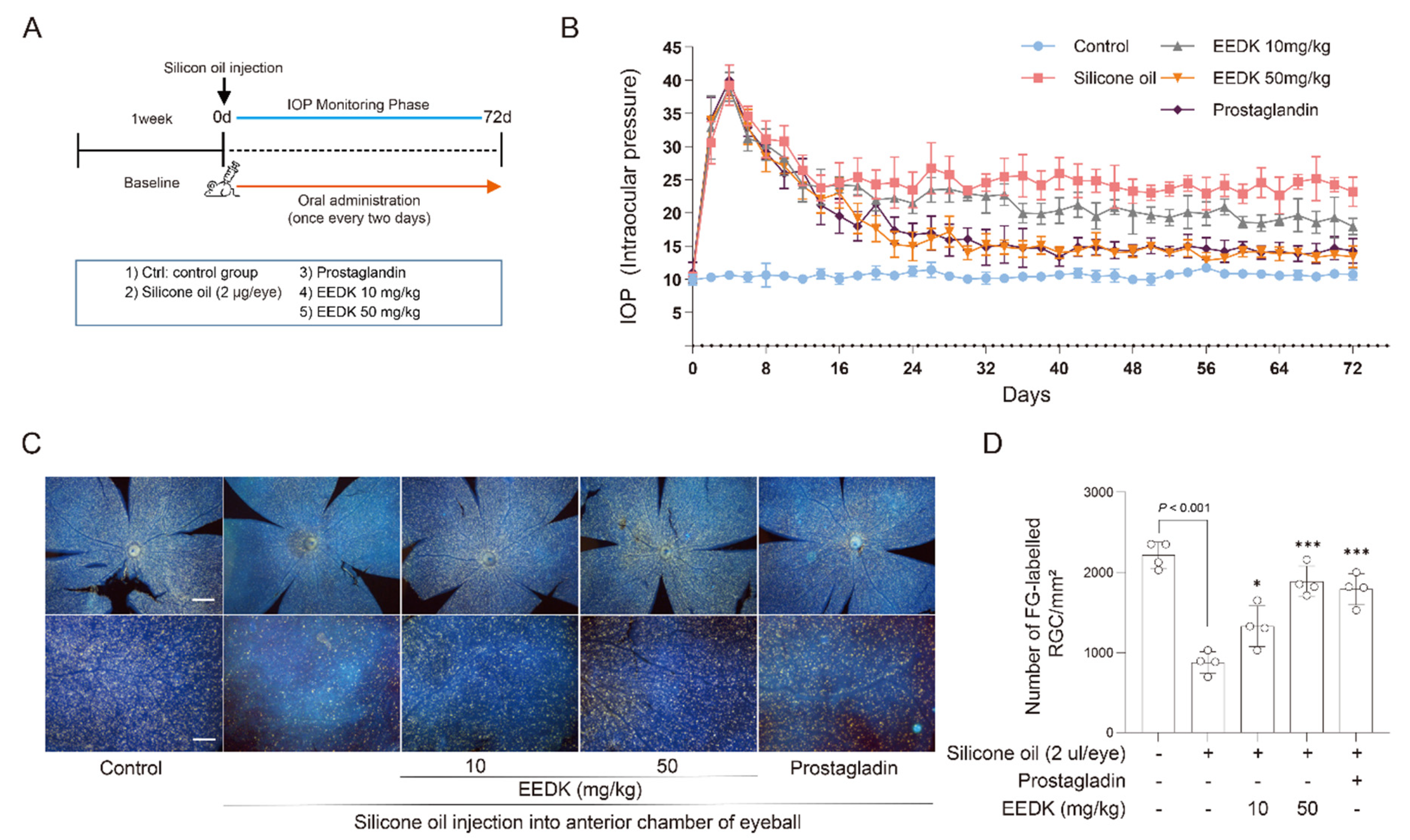 2.6. Protective Effect of 70% EEDK on Retinal Ganglion Cell Survival in a Silicone Oil–Induced Ocular Hypertension Mouse Model