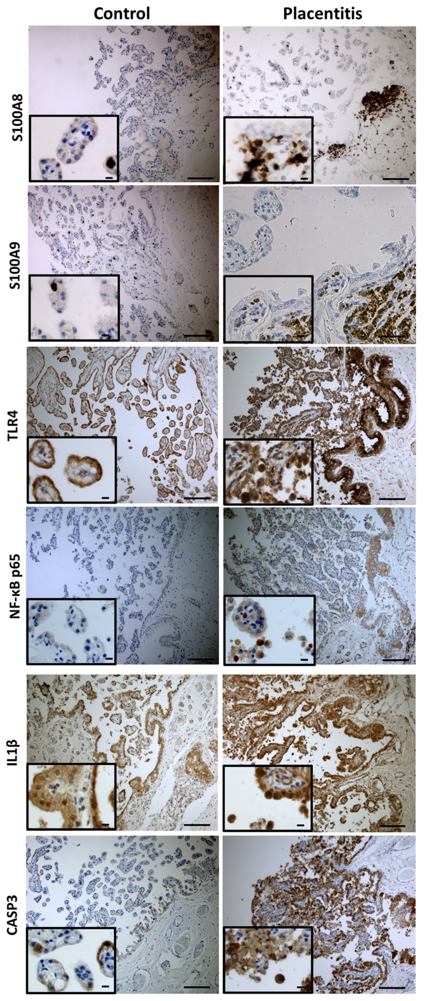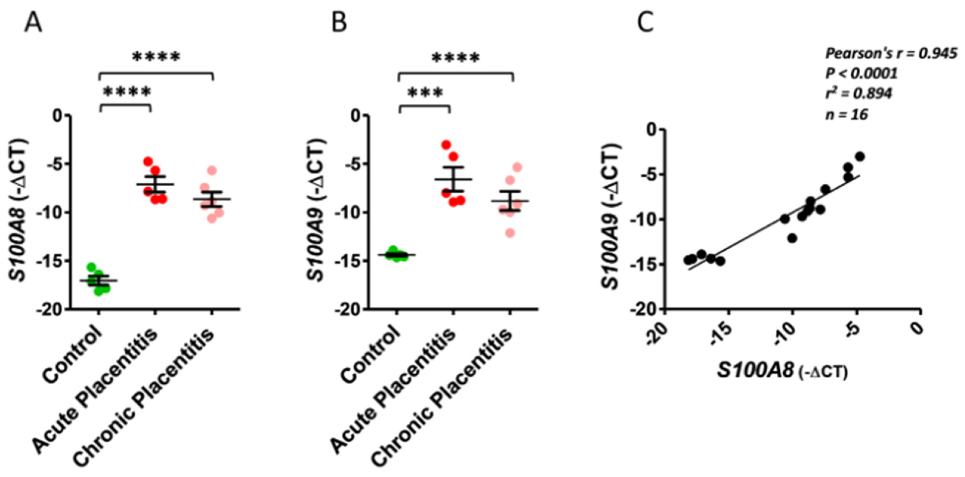- Nair, R.R.; Khanna, A.; Singh, K. Role of inflammatory proteins S100A8 and S100A9 in pathophysiology of recurrent early pregnancy loss. Placenta 2013, 34, 824–827. [Google Scholar] [CrossRef]