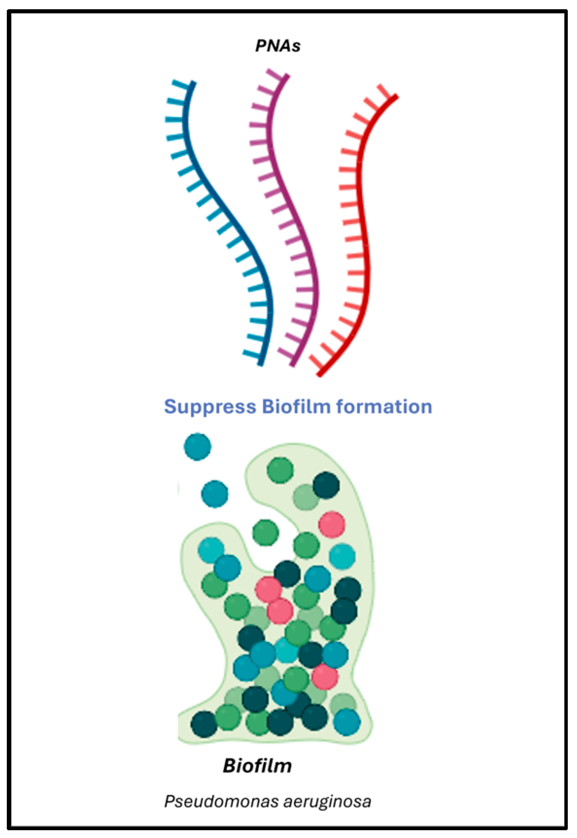 - Karp, H.Q.; Nowak, E.S.; Kropp, G.A.; Col, N.A.; Schulz, M.D.; Sriranganathan, N.; Rao, J. Broad host range peptide nucleic acids prevent Gram-negative biofilms implicated in catheter-associated urinary tract infections. Microorganisms 2025, 13, 1948. [Google Scholar] [CrossRef] [PubMed]