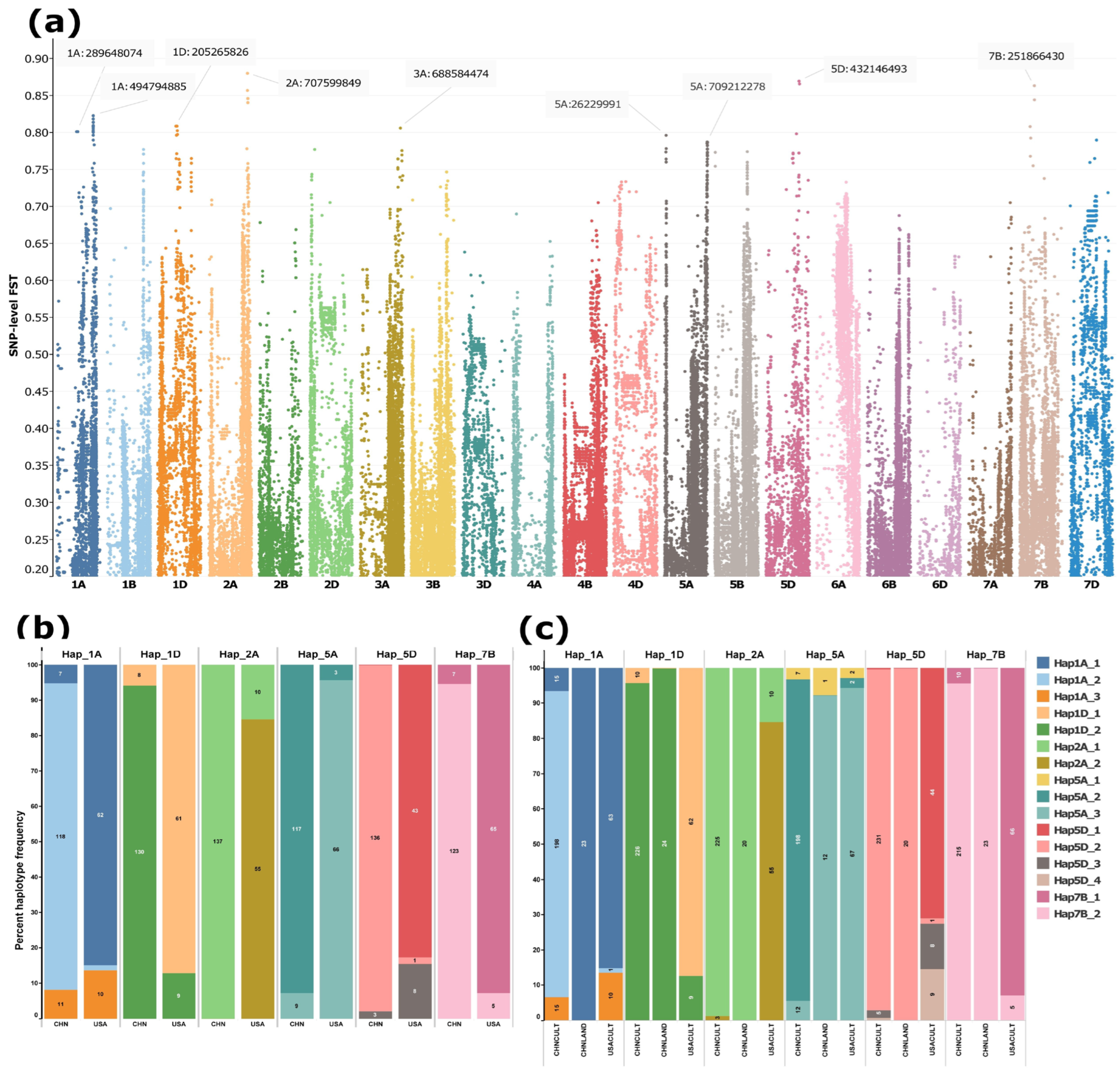 - Niu, J.; Ma, S.; Zheng, S.; Zhang, C.; Lu, Y.; Si, Y.; Tian, S.; Shi, X.; Liu, X.; Naeem, M.K.; et al. Whole-Genome Sequencing of Diverse Wheat Accessions Uncovers Genetic Changes during Modern Breeding in China and the United States. Plant Cell 2023, 35, 4199–4216. [Google Scholar] [CrossRef] [PubMed]