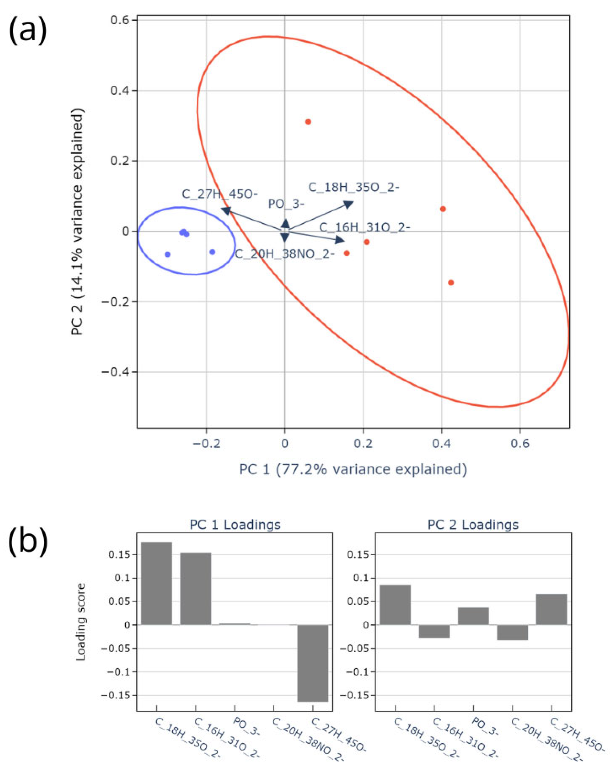 - Almstrand, A.C.; Josefson, M.; Bredberg, A.; Lausmaa, J.; Sjövall, P.; Larsson, P.; Olin, A.C. TOF-SIMS Analysis of Exhaled Particles from Patients with Asthma and Healthy Controls. Eur. Respir. J. 2012, 39, 59–66. [Google Scholar] [CrossRef] [PubMed]