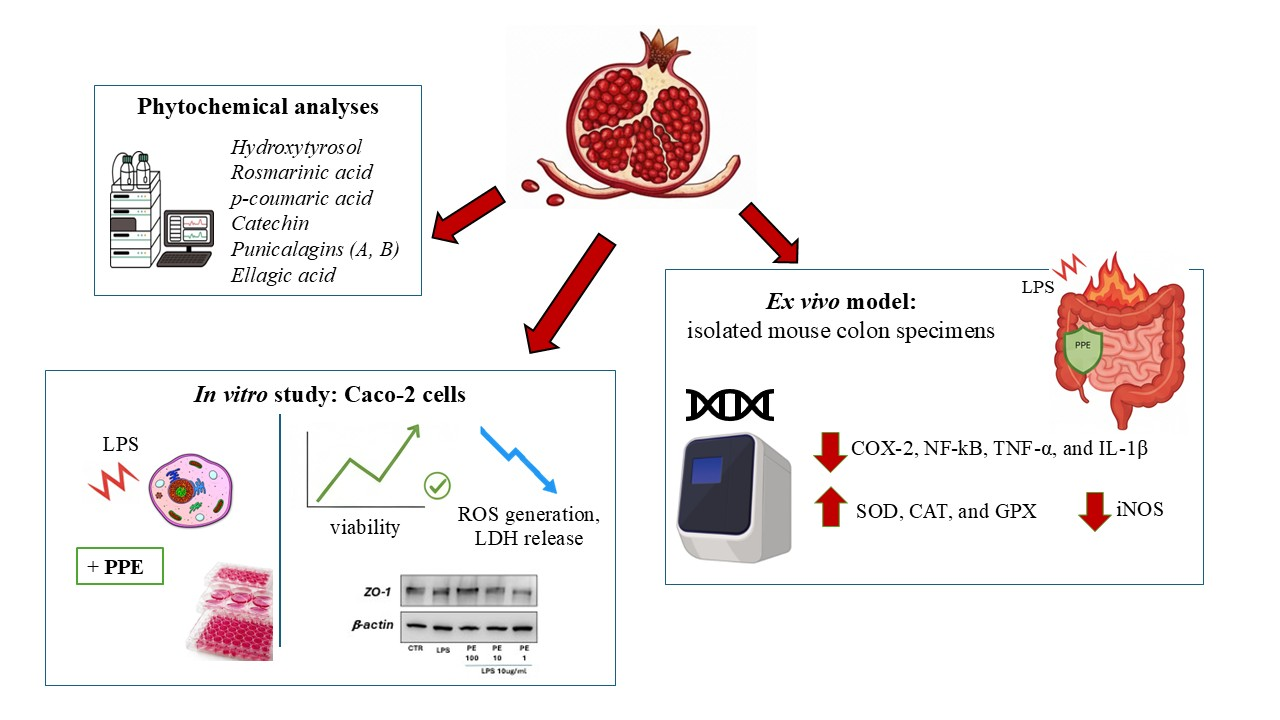 Recinella L, Acquaviva A, Bruno A, Ciaramellano D, Centulio AP, Dovizio M, Milillo C, Mozzon M, Generali D, Genovesi G, et al. Intestinal Protective Effects of a Pomegranate Peel Extract in In Vitro and Ex Vivo Studies. International Journal of Molecular Sciences. 2026; 27(3):1603. https://doi.org/10.3390/ijms27031603