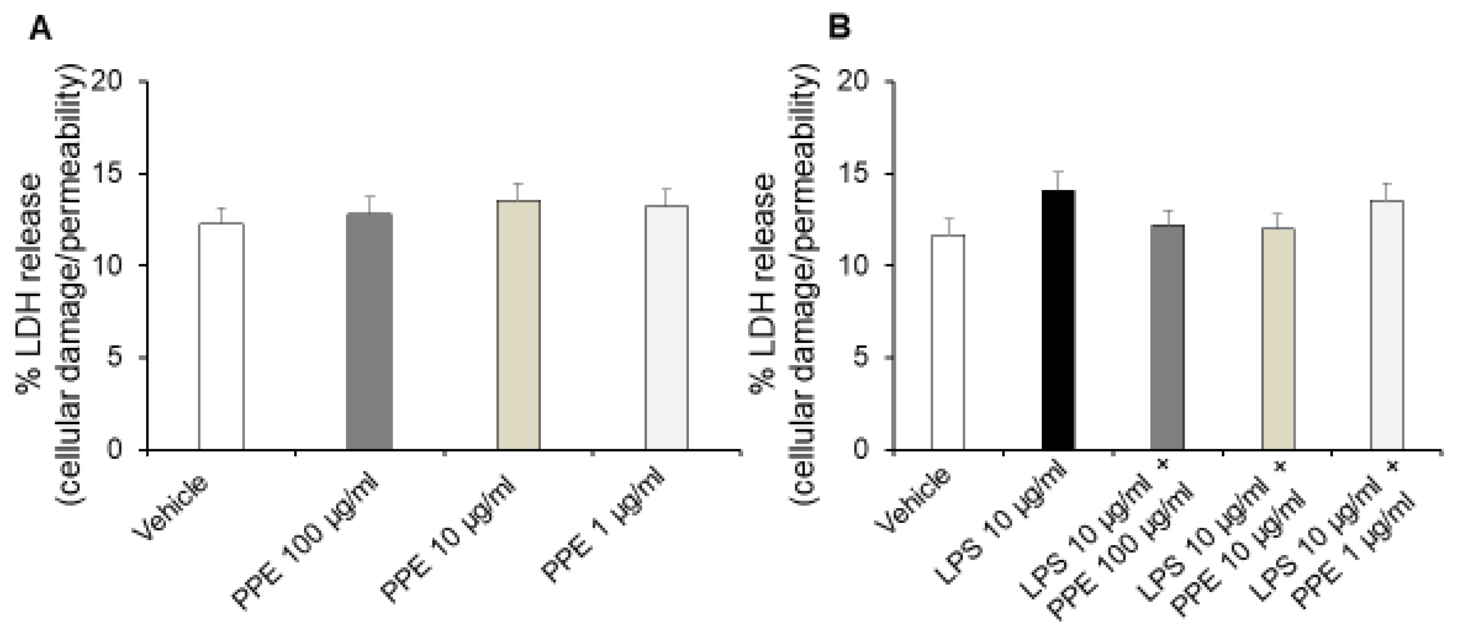 - Kumar, P.; Nagarajan, A.; Uchil, P.D. Analysis of Cell Viability by the Lactate Dehydrogenase Assay. Cold Spring Harb. Protoc. 2018, 2018, prot095497. [Google Scholar] [CrossRef]