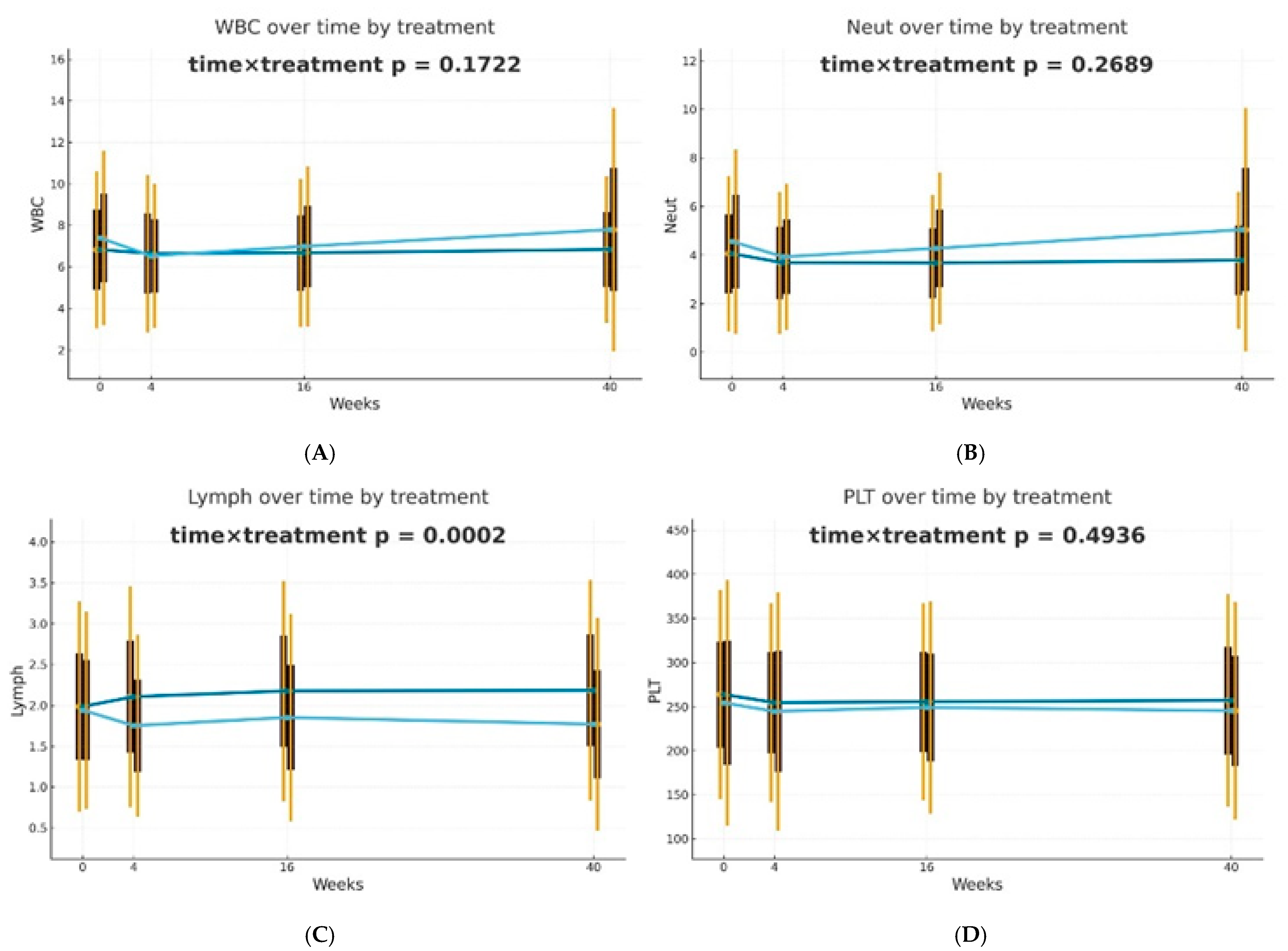 | lymph_16 | Lymphocyte count at week 16 (±4) of treatment |