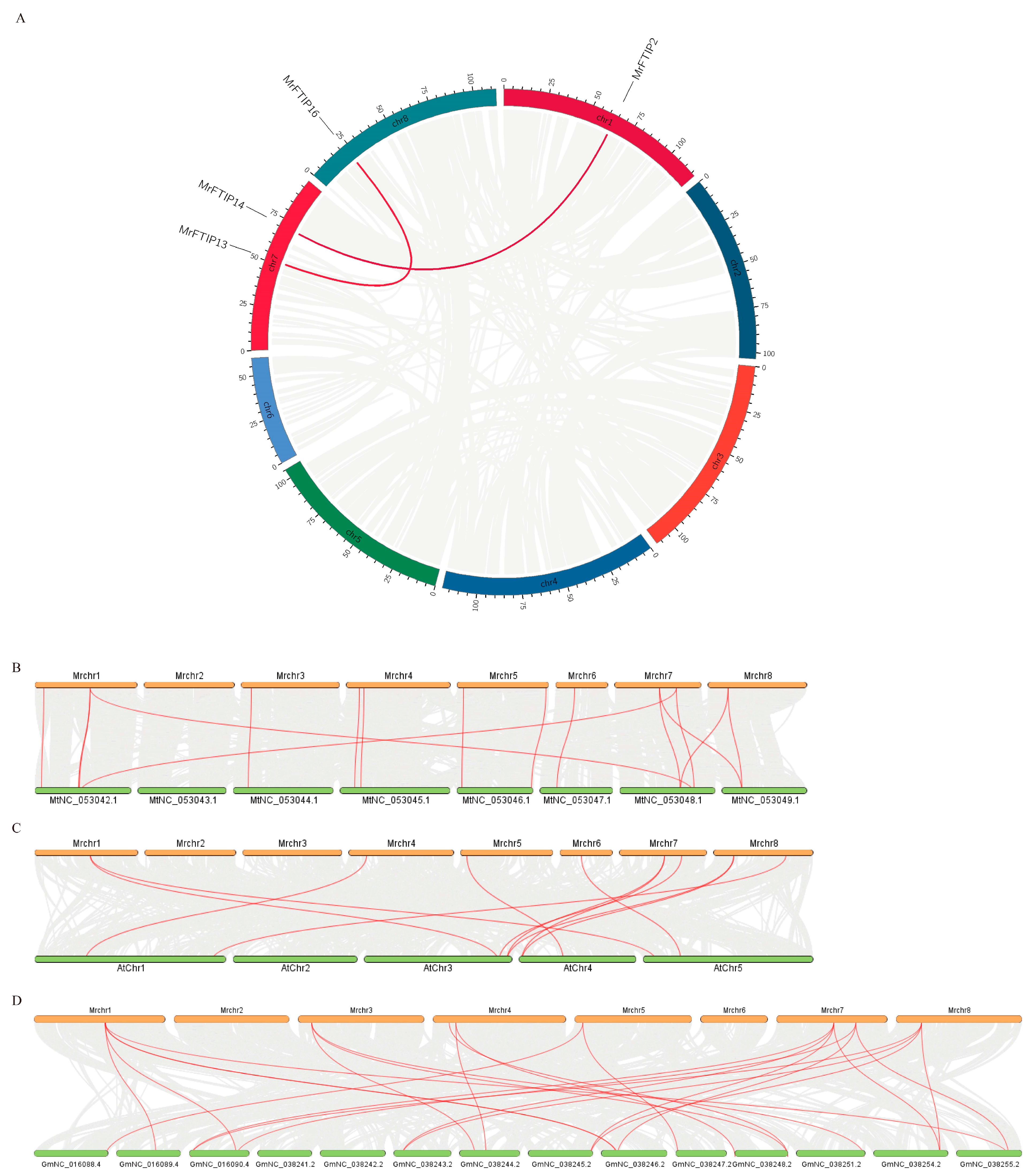 4.1. Identification, Distribution and Sequence Analysis of MrFTIPs