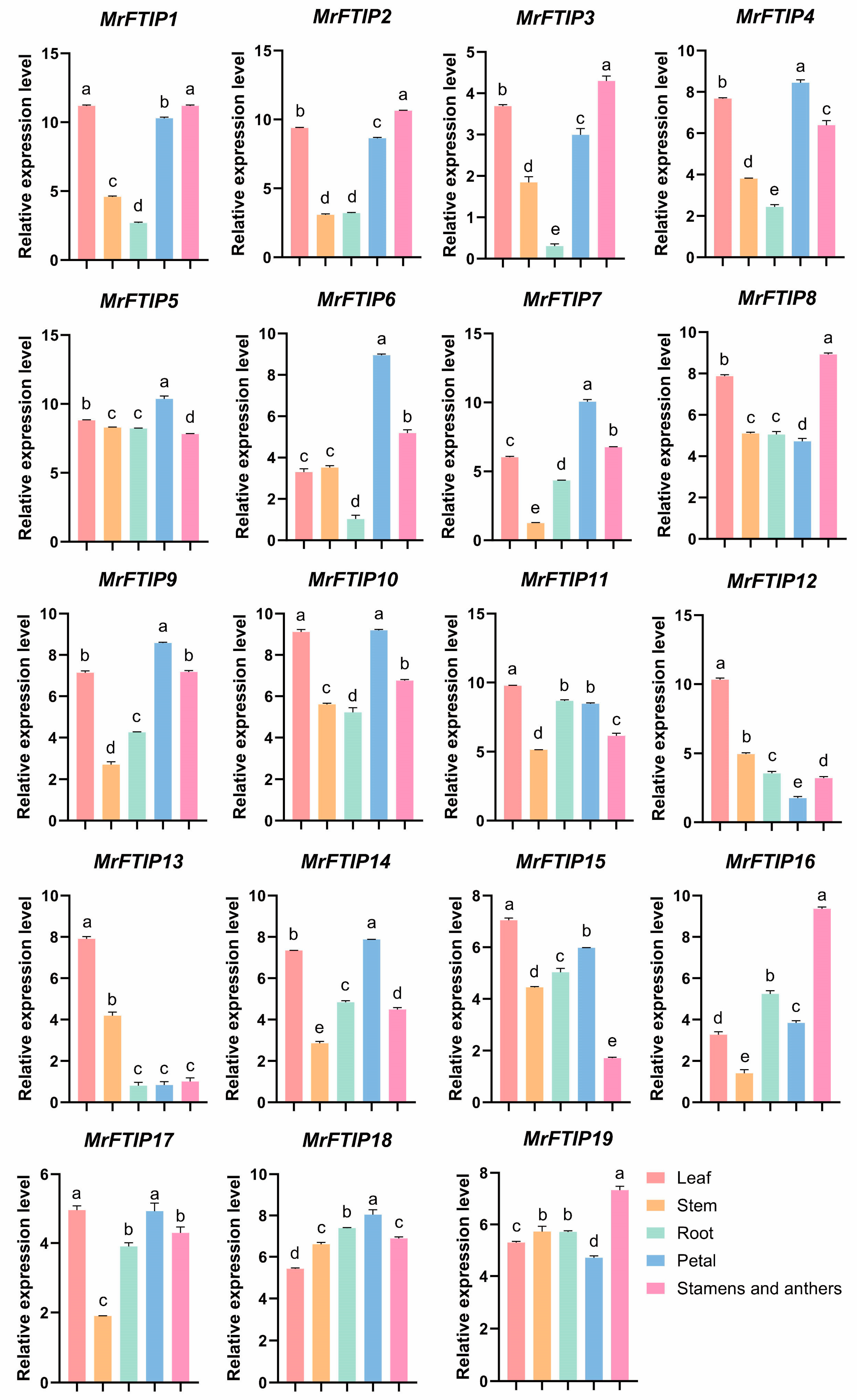 2.5. Simple Sequence Repeats Analysis of MrFTIP Genes