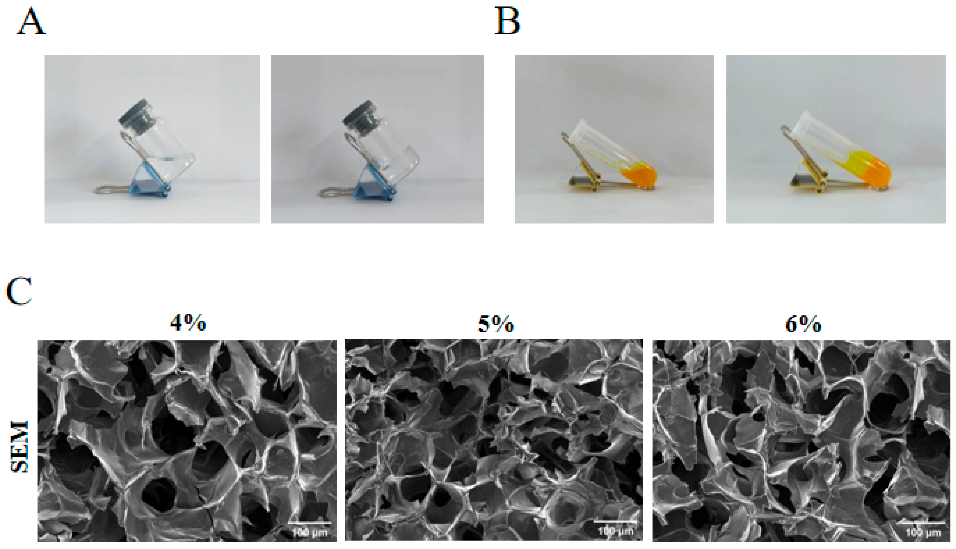The prepared hydrogels were immersed in DMEM supplemented with 10% fetal bovine serum and 1% penicillin-streptomycin at concentrations of 0.1 and 0.2 g/mL. The mixture was incubated at 37 °C for 24 h to obtain the corresponding hydrogel extracts.
