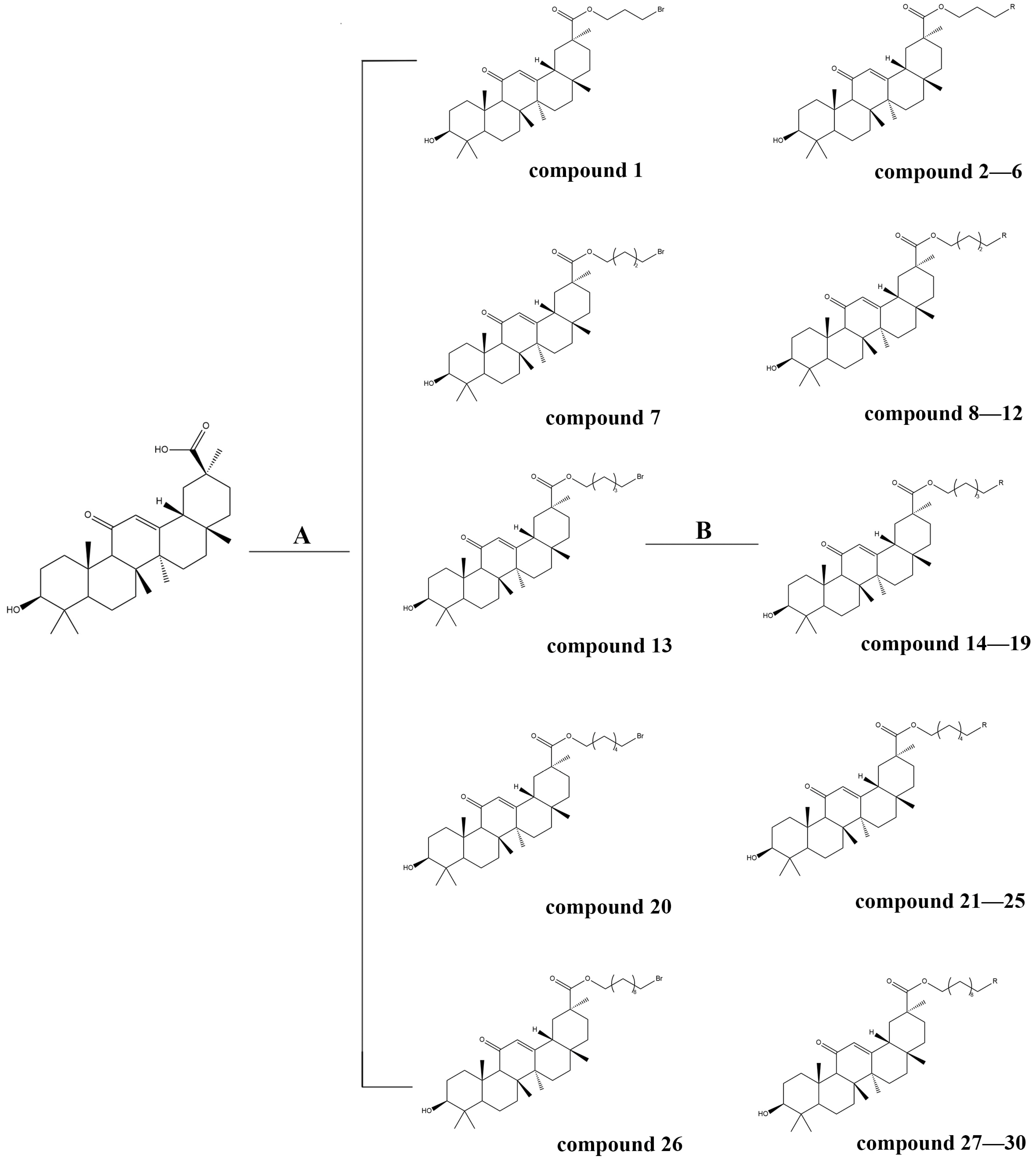 4.1. Synthetic Method of Glycyrrhetinic Acid Derivatives