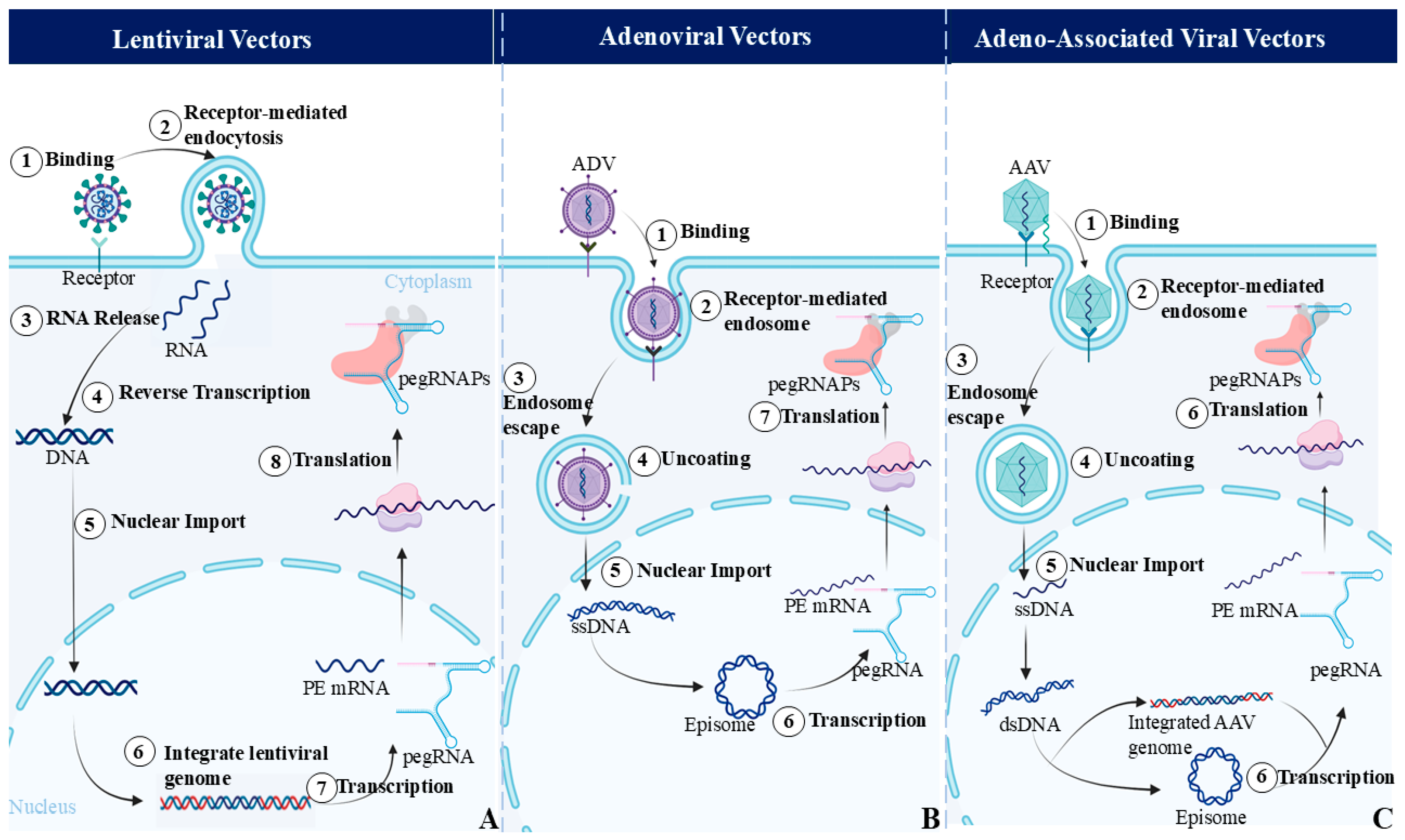 - Wang, Q.; Liu, J.; Janssen, J.M.; Tasca, F.; Mei, H.; Gonçalves, M.A.F.V. Broadening the reach and investigating the potential of prime editors through fully viral gene-deleted adenoviral vector delivery. Nucleic Acids Res. 2021, 49, 11986–12001. [Google Scholar] [CrossRef] [PubMed]