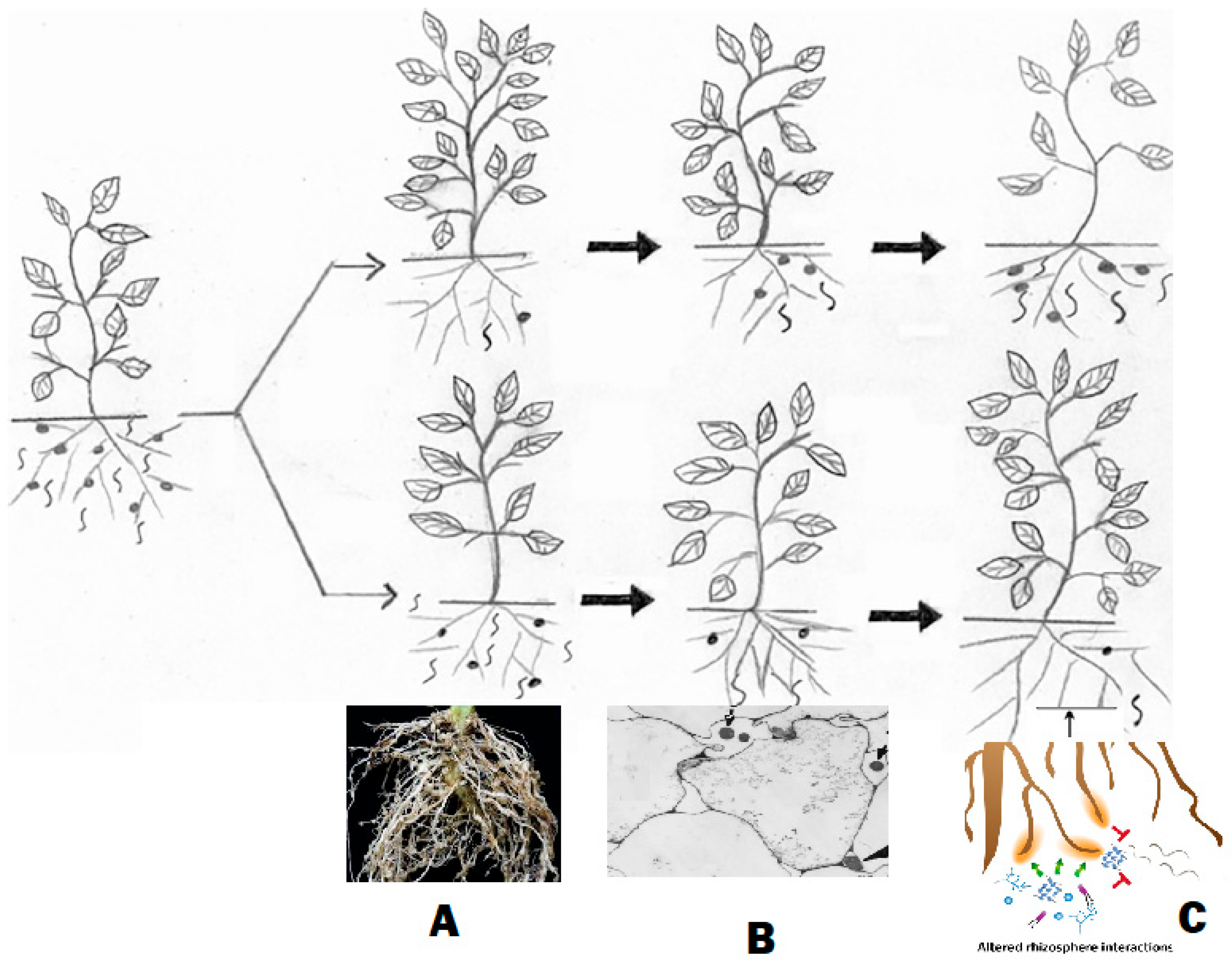- Topalović, O.; Heuer, H. Plant-nematode interactions assisted by microbes in the rhizosphere. Curr. Issues Mol. Biol. 2019, 30, 75–88. [Google Scholar] [CrossRef] [PubMed]