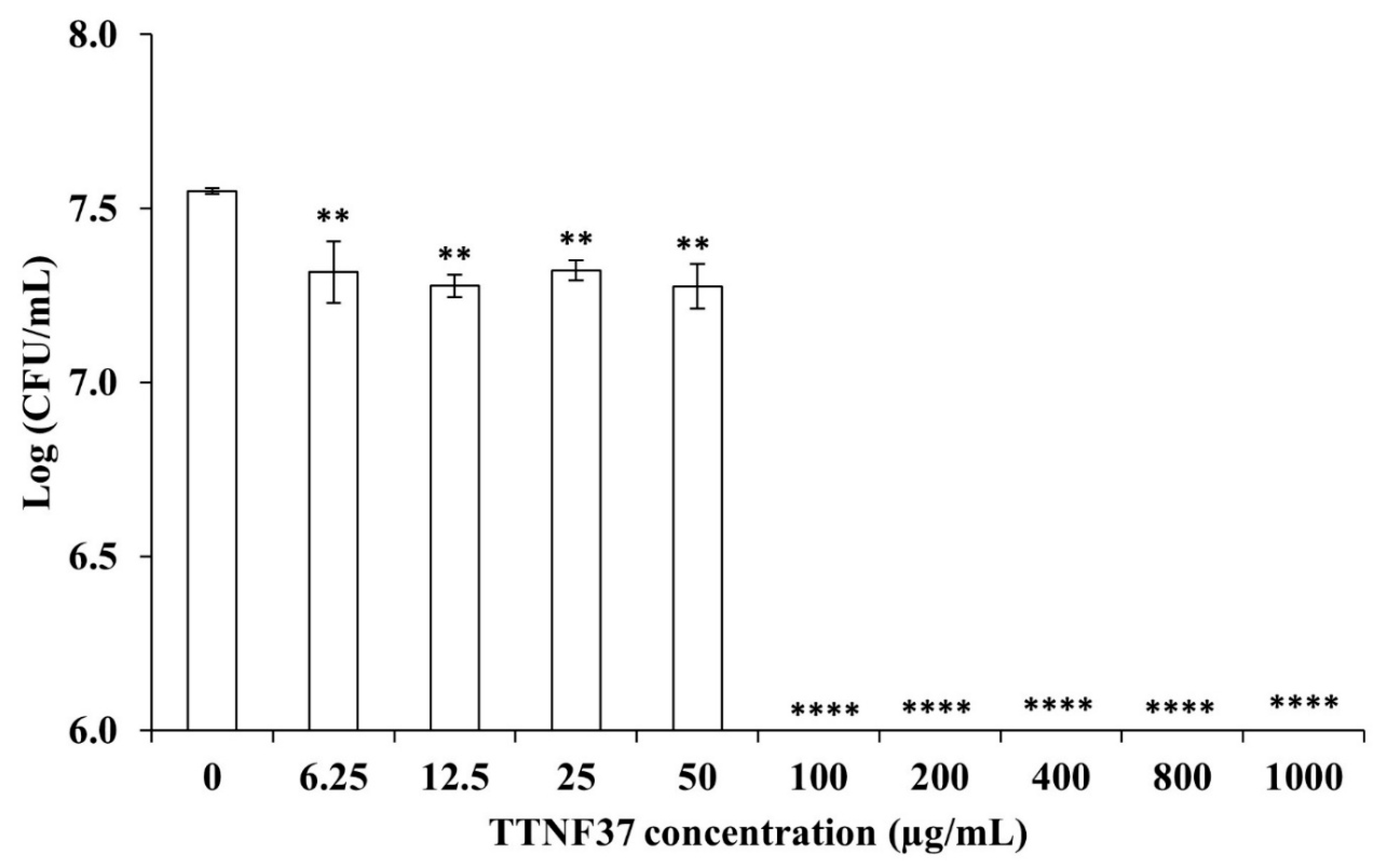 3.2.2. Screening of the TTNF37 Antimicrobial Activity