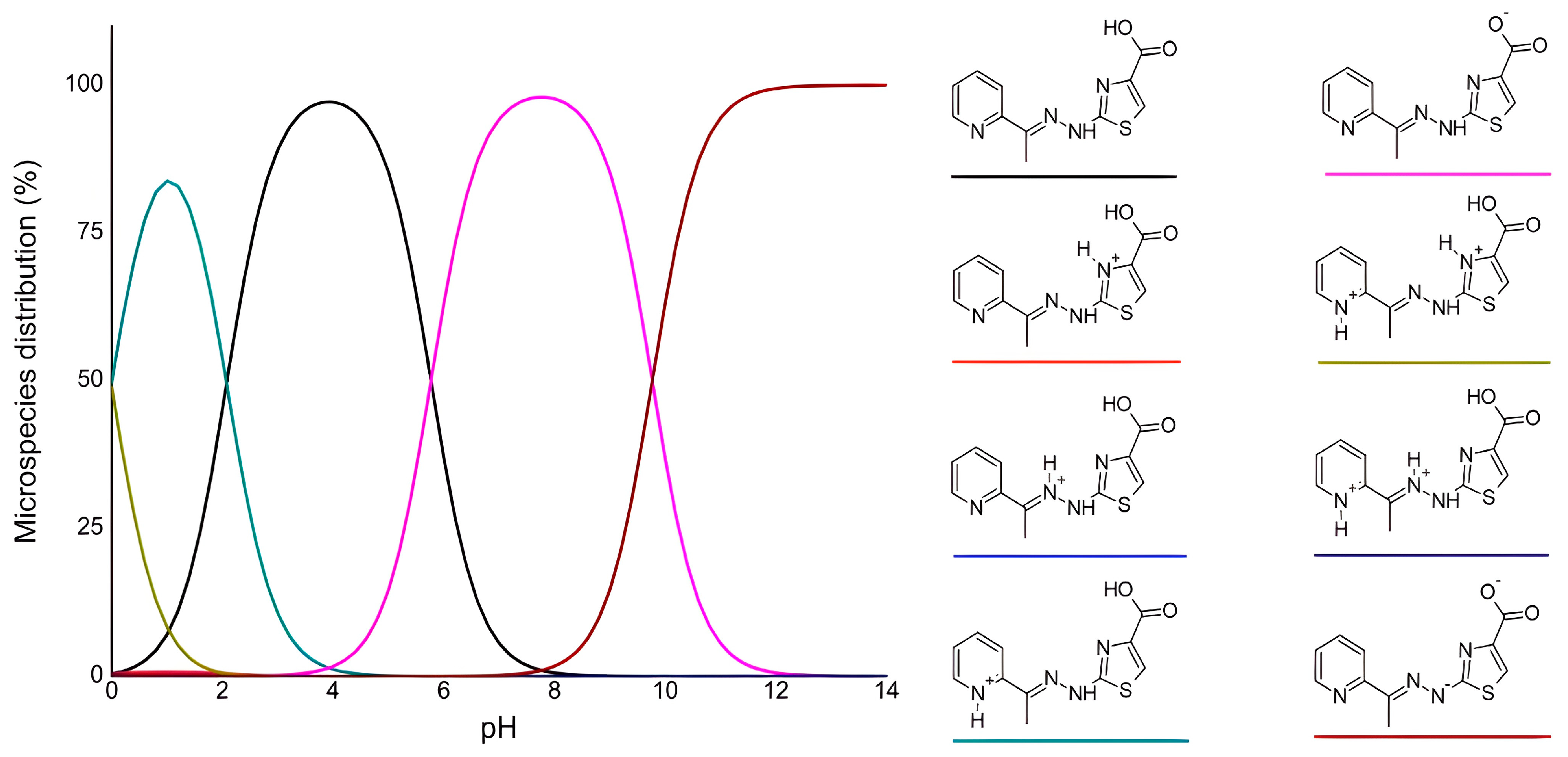 2.4.1. Prediction of pKa Values and Distribution of Micro Species