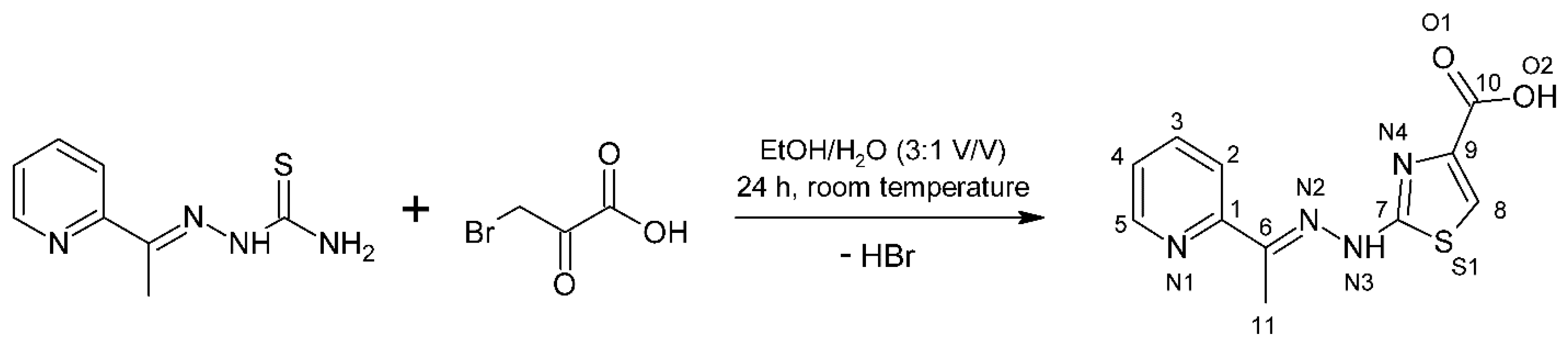 3.1.2. Synthesis of 2-{(2E)-2-[1-(Pyridin-2-yl)ethylidene]hydrazinyl}-1,3-thiazole-4-carboxylic Acid