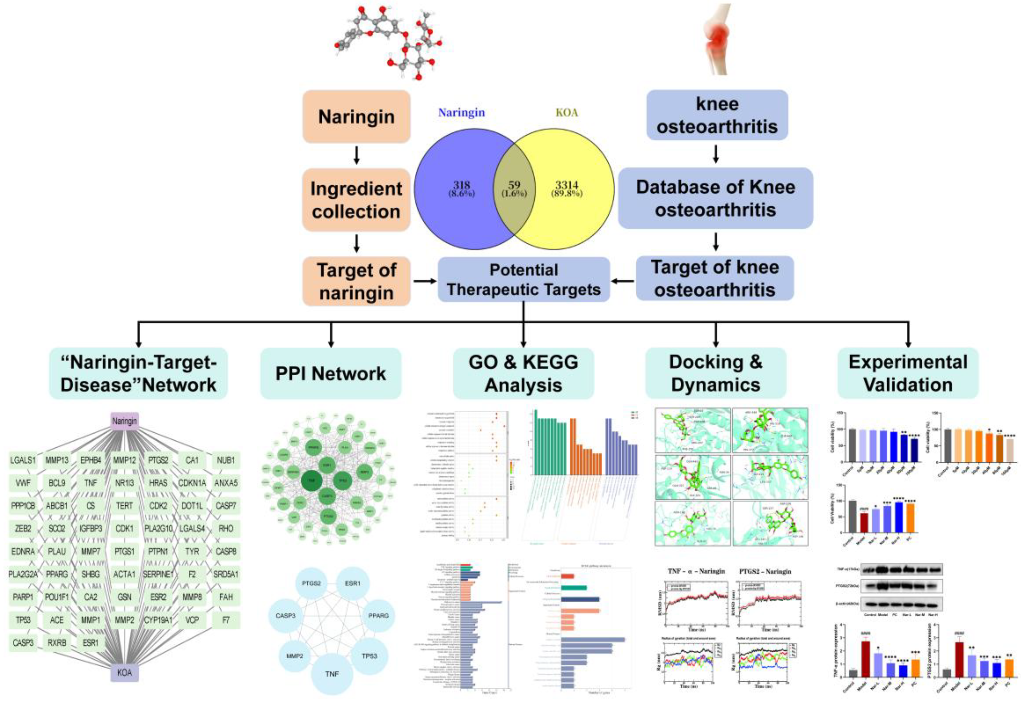 Naringin Alleviates Knee Osteoarthritis by Targeting TNF-α and PTGS2: An Integrated Network Pharmacology, Molecular Simulation, and Experimental Validation Study