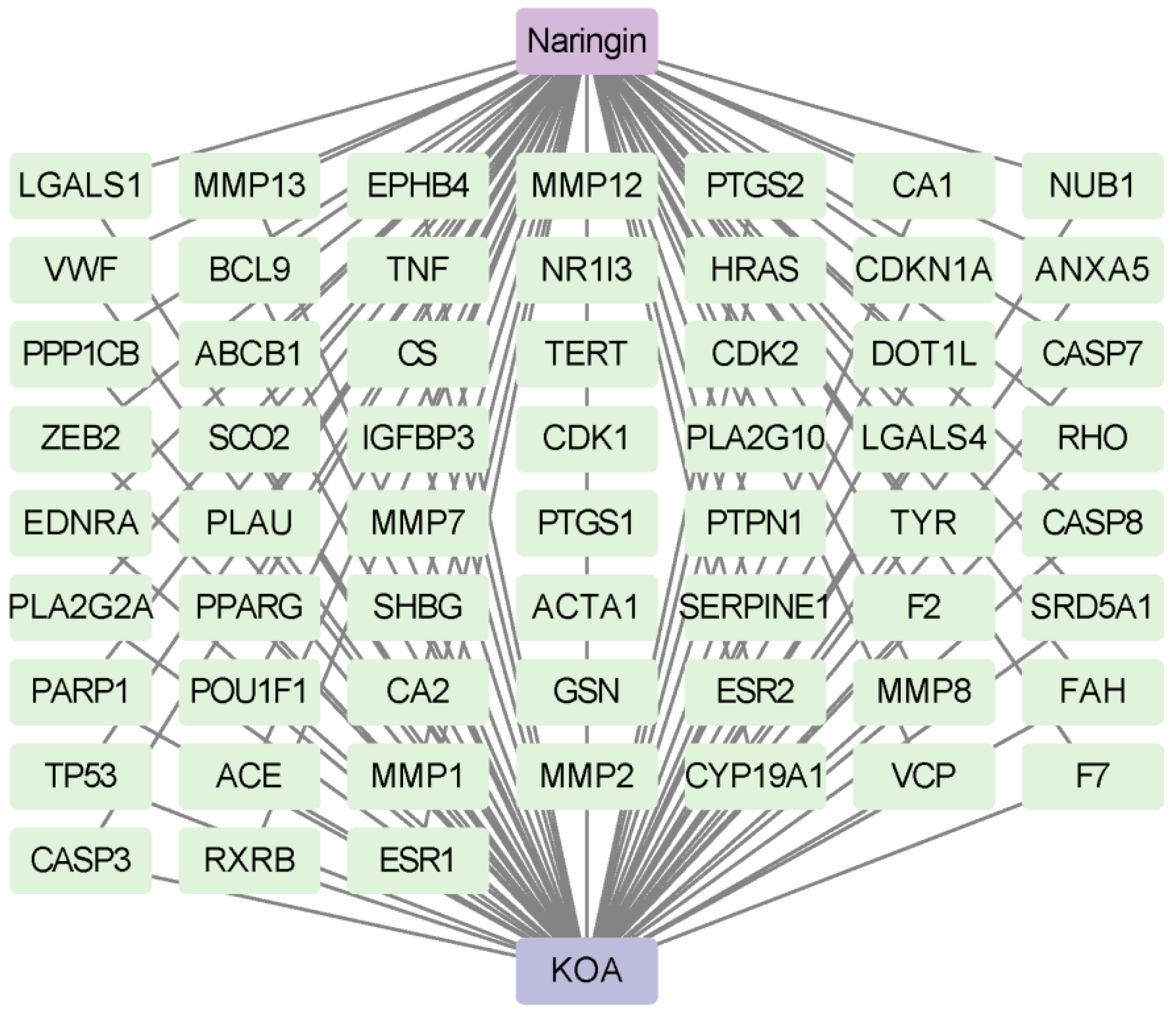 2.1. Screening of Potential Targets of Naringin for Osteoarthritis