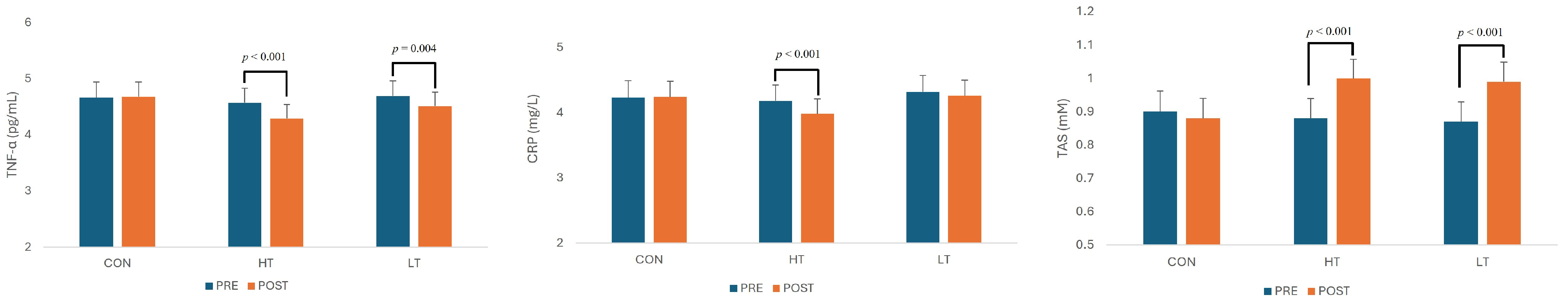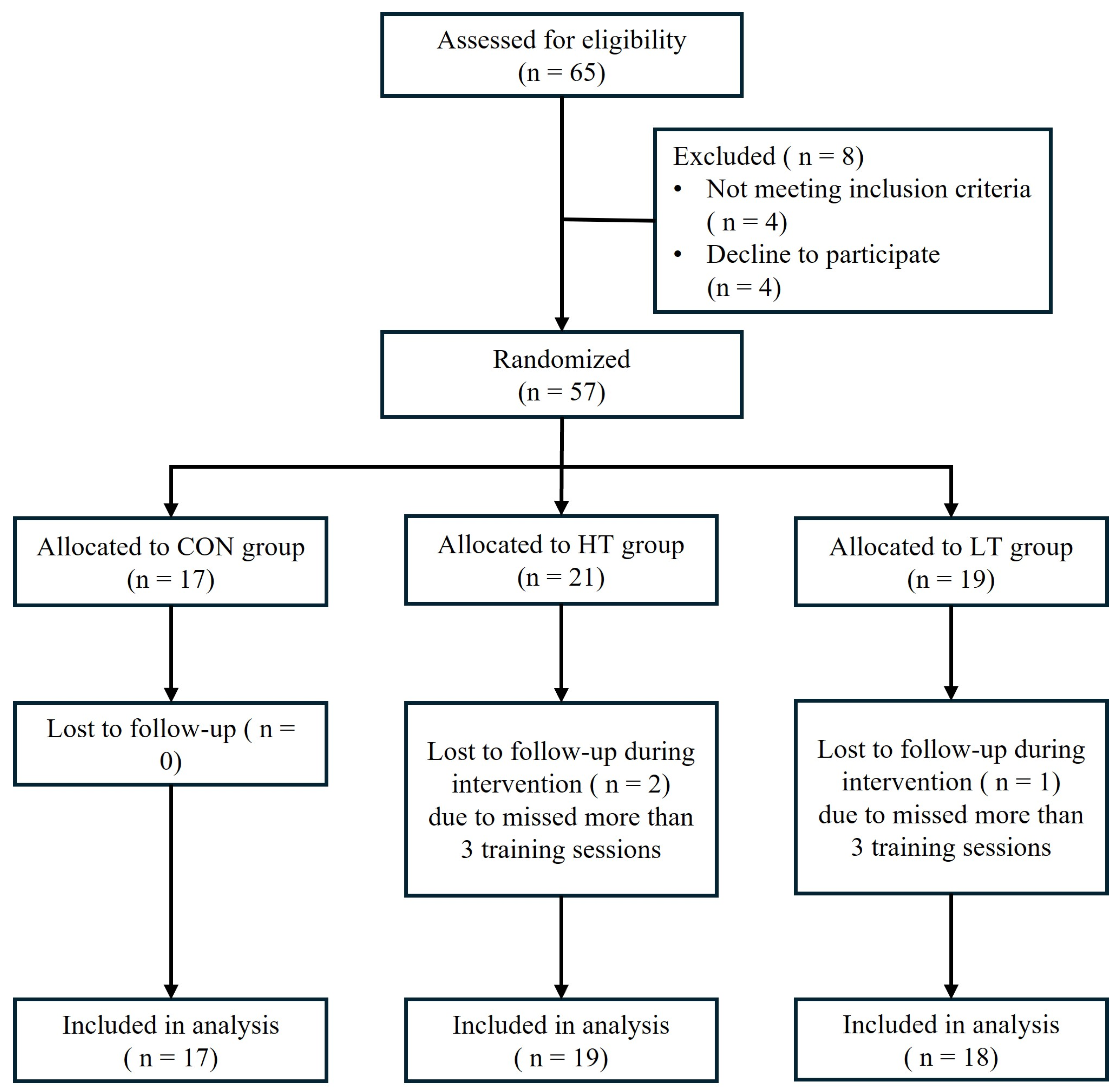| Variables | CON (n = 17) | HT (n = 19) | LT (n = 18) |