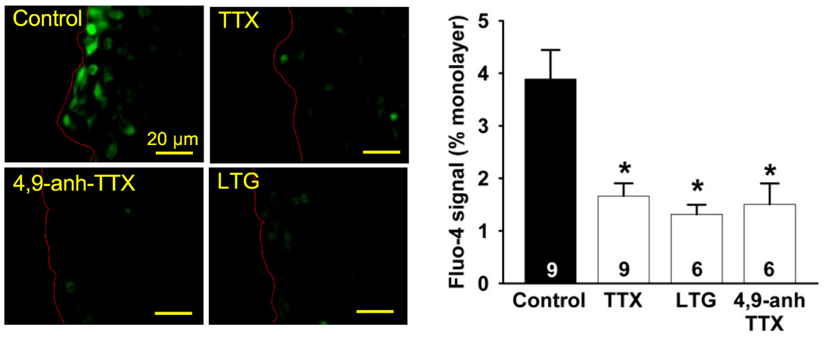 2.1. The Ca2+ Signaling Associated with Endothelial Cell Migration Is Mediated by Nav Channels