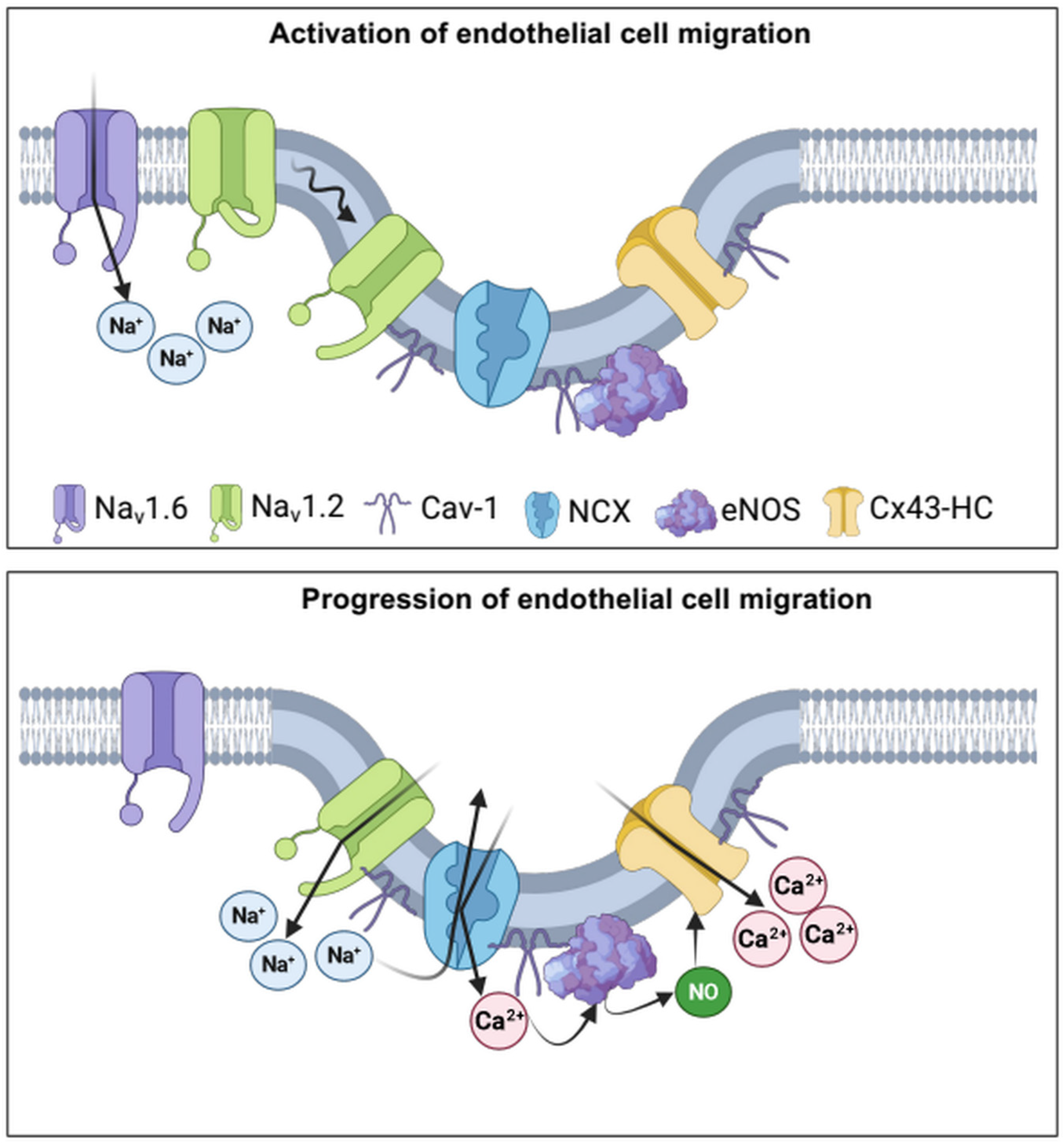 Espinoza, H.; Figueroa, X.F. Functional Coupling Between Voltage-Dependent Sodium Channels and Activation of the Ca2+ Signaling That Mediates Endothelial Cell Migration. Int. J. Mol. Sci. 2026, 27, 1868. https://doi.org/10.3390/ijms27041868